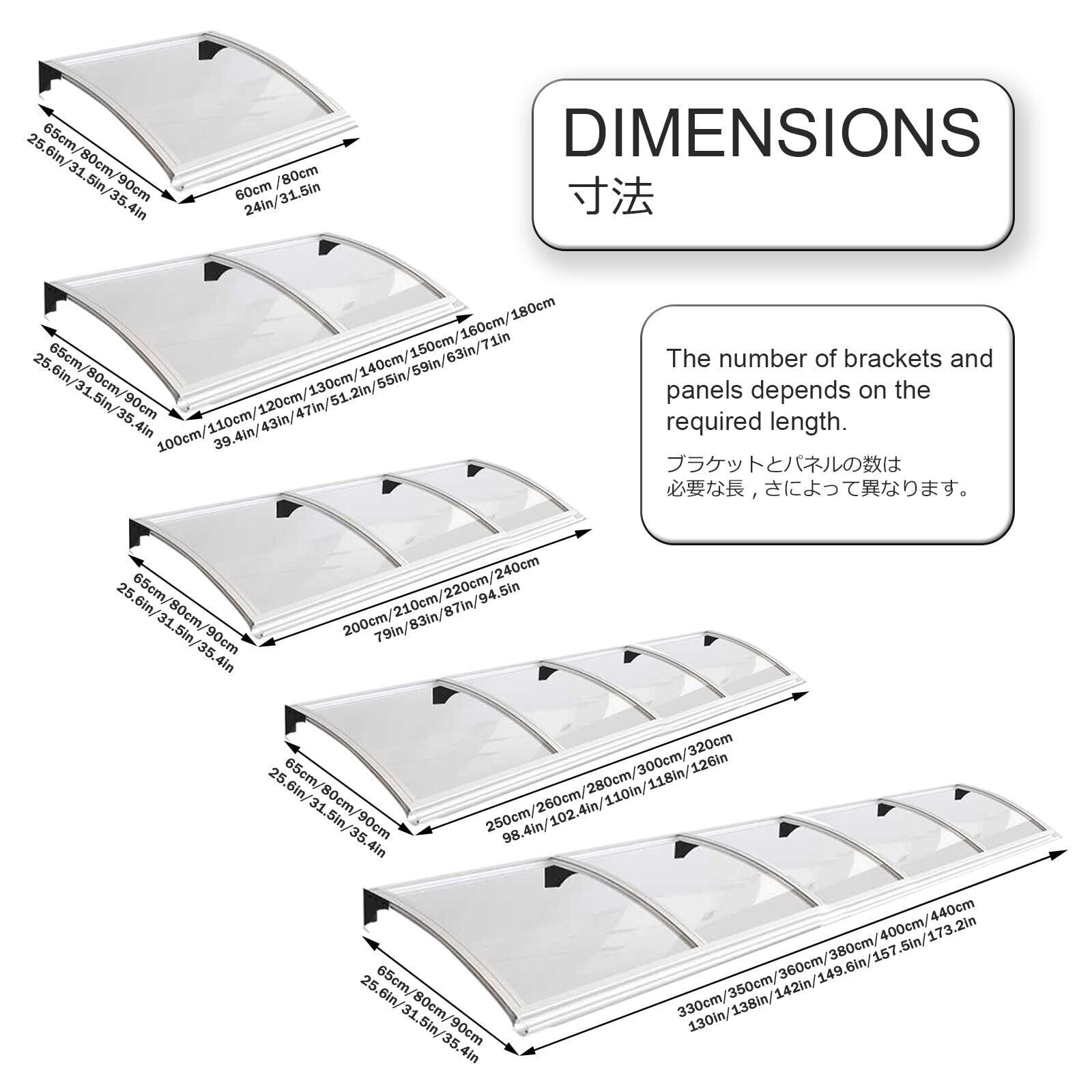 YFAURNDE 屋根シェルター庇,屋根ふきキャノピー,ひさし屋根 後付け,アルミニウム合金ブラケット雨よけ, 玄関 雨よけ 庇 アル,排水が妨げられることなく、複数の用途と快適な雰囲気を提供します。(80*180cm/31.5*71in)