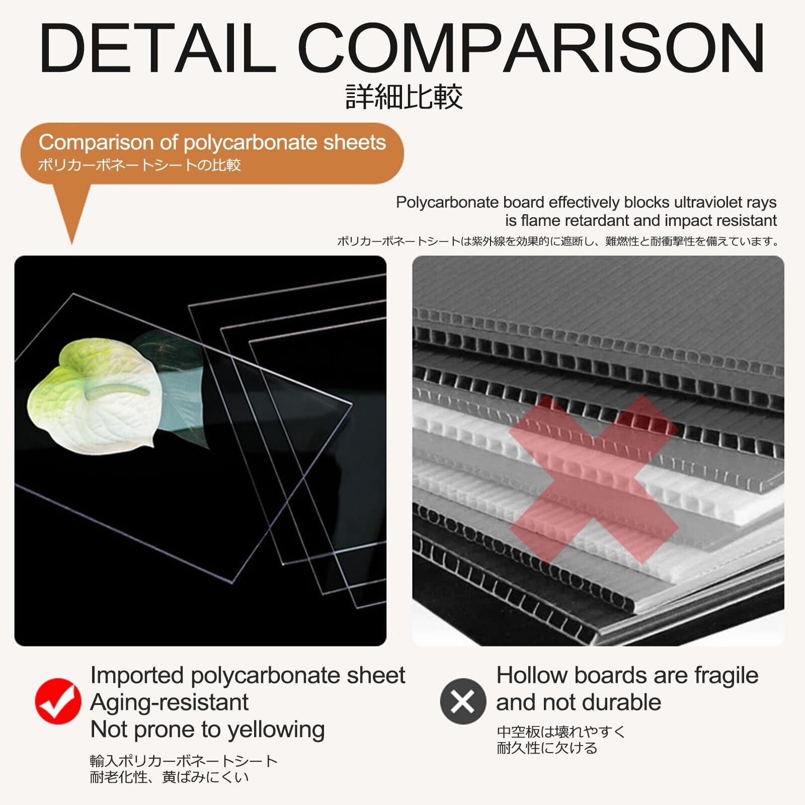 高品質の素材: オーニングは頑丈なポリカーボネート シートと頑丈なアルミ フレームで作られており、耐摩耗性、変形防止、色あせしにくい、強力な耐荷重性と耐久性を備えています。底部には高強度の炭素鋼ブラケットが装備されており、全体的な安定性が大幅に向上しています。