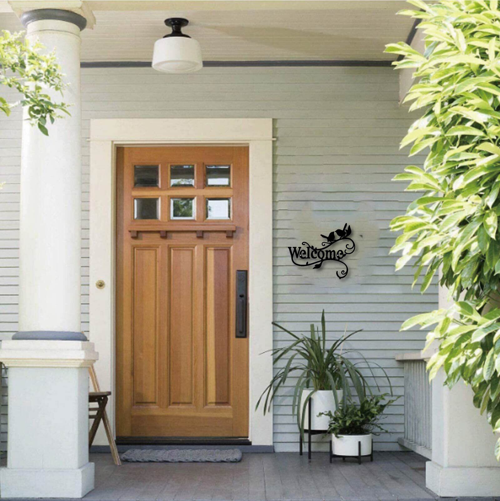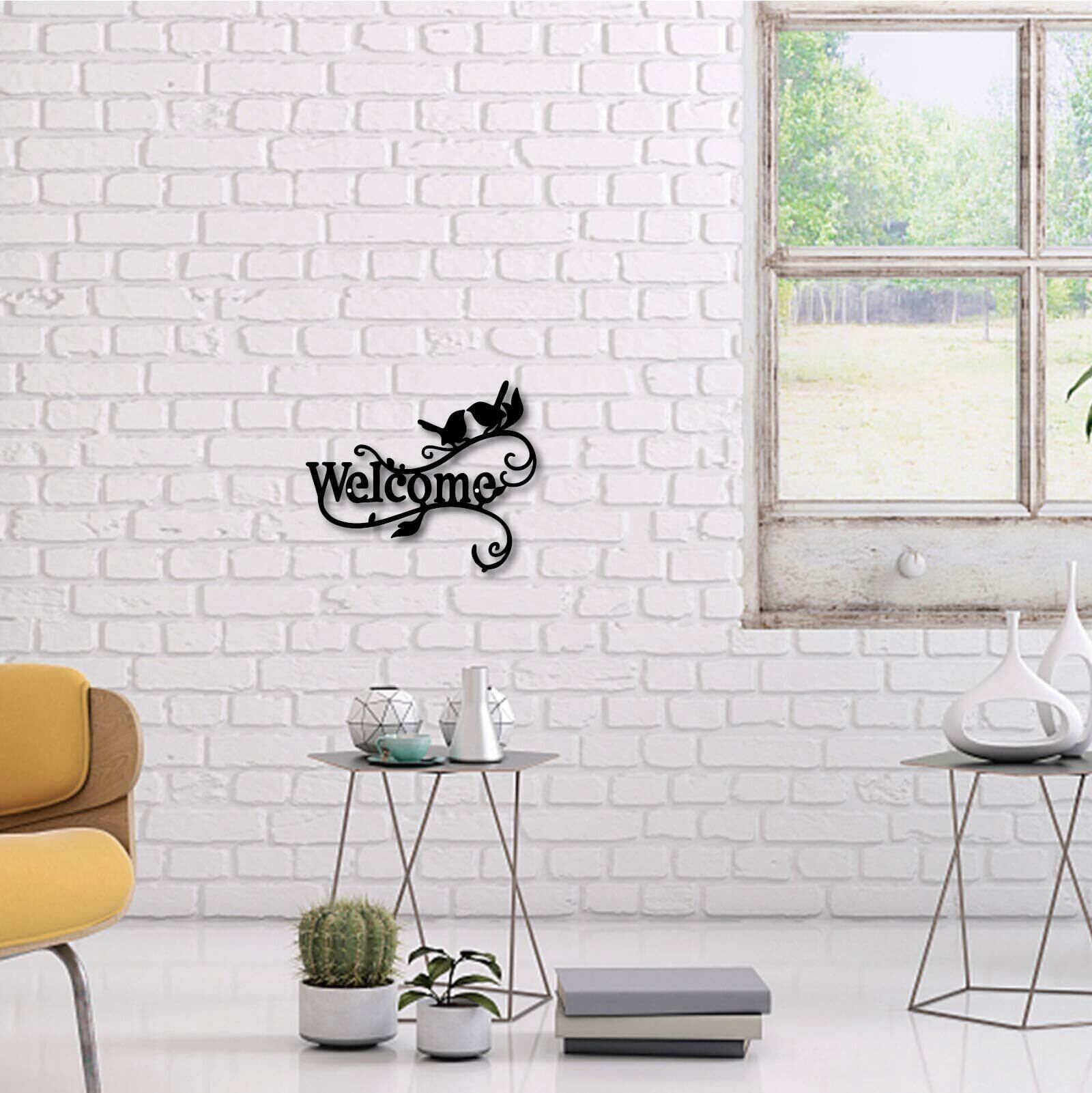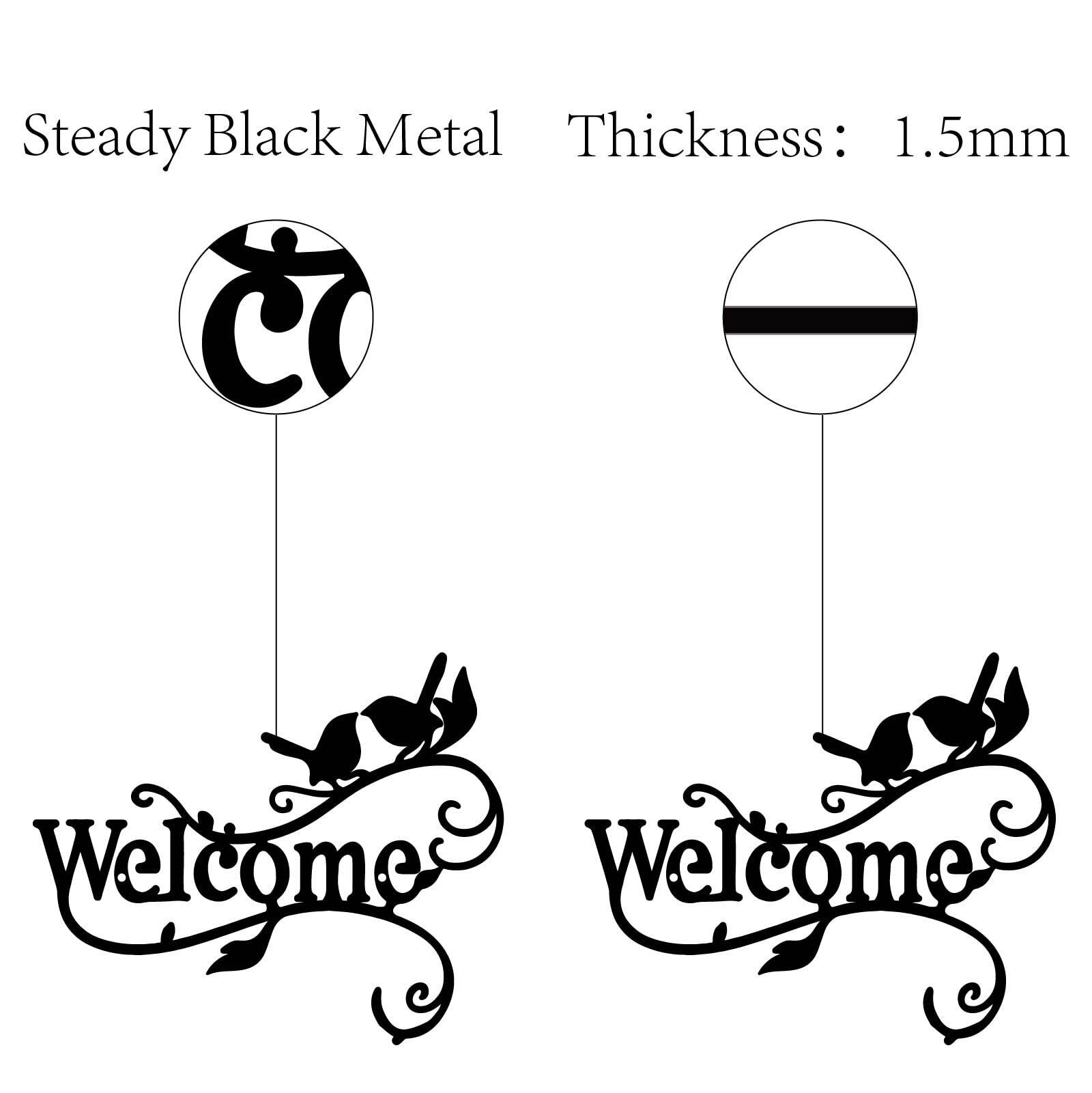 CREATCABIN ウェルカム メタル ウォールアート 鳥の枝の装飾 壁掛け シルエット 彫刻 オーナメント アイアンサイン 屋内 屋外 ホーム リビングルーム キッチン ガーデン オフィス 装飾 ギフト ブラック 12 x 10インチ