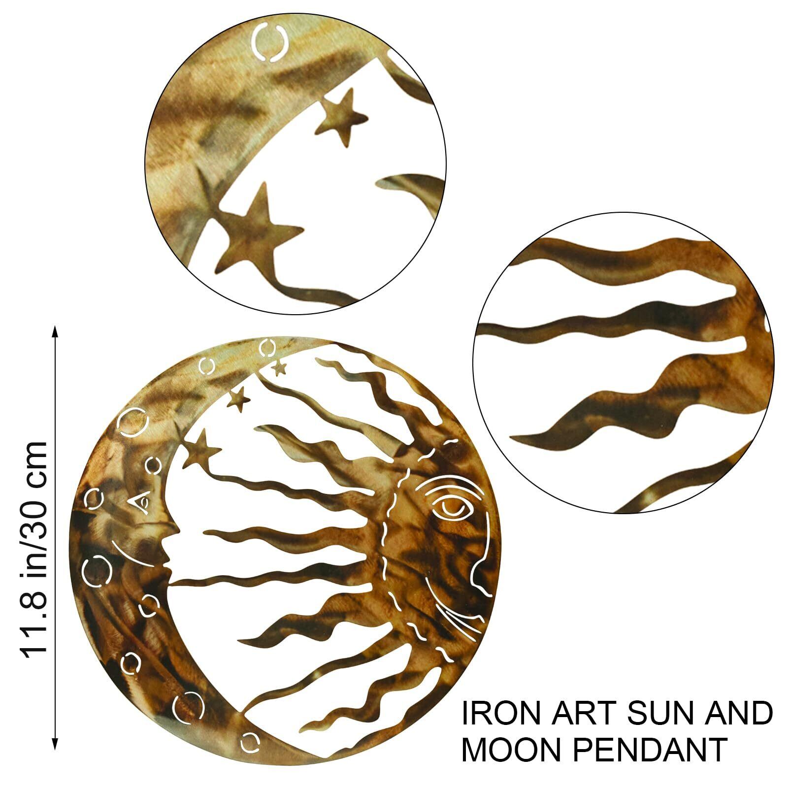 【2022最新】MrMrKura 壁飾り 太陽と月の ウォールデコ アイアン 金属製 ウォールアート 壁掛け装飾 太陽 月 星 彫刻 屋外屋内用 北欧 インテリア 芸術的 ホーム装飾 工芸装飾品 デコレーション プレゼント オーナメント (銅色)
