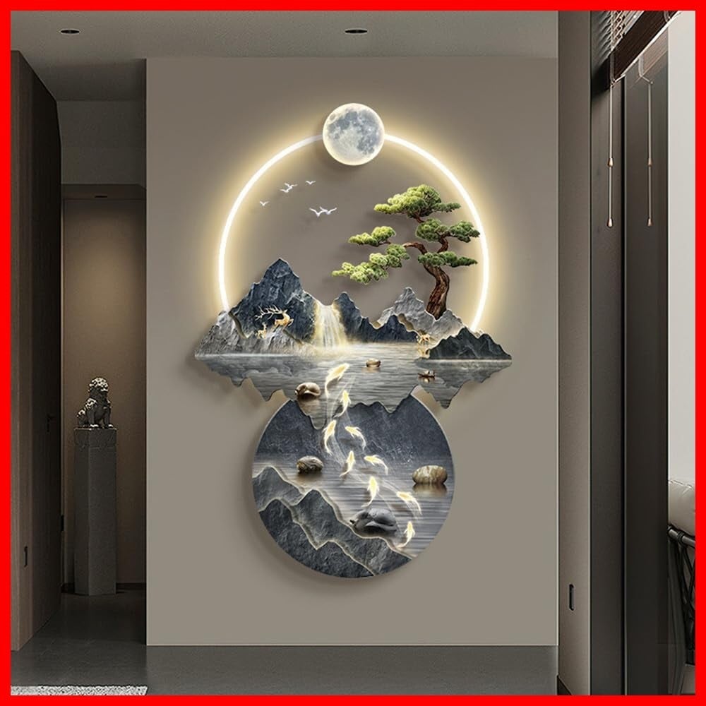 Aeroor LEDの壁の燭台 輝く3Dウォールアートの装飾 壁の彫刻の壁掛けアート装飾ランプ 禅風景画ウォールランプ リビングルーム、入り口、廊下用 (D)