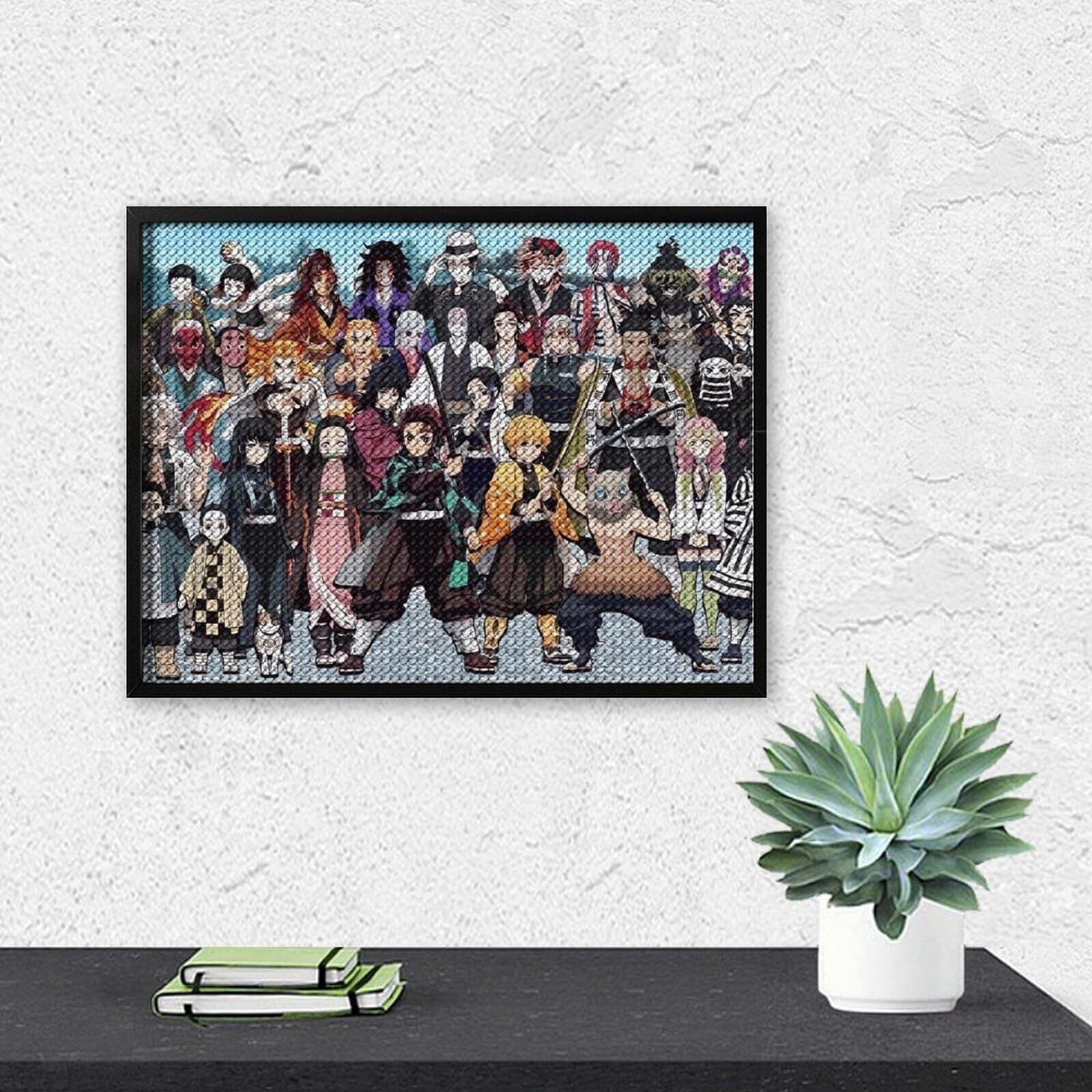 鬼滅の刃ダイヤモンド画 5D ダイヤモンドアート DIY 手作り かっこいい 壁画 壁掛け 絵 モダンアート インテリア装飾 壁飾り 工芸品 丸いダイヤモンド 人気 アニメ 新居祝い 贈り物 12"x16"