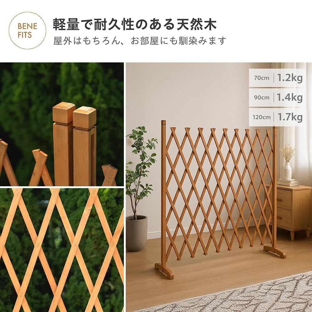 【屋内・屋外どこでも活躍する多用途ゲート】 ペットの侵入を防ぐゲート、子どもの立ち入りを制限する柵、庭の景観を整えるラティスフェンスとして、屋外でも屋内でも場所を選ばず活躍します。様々なシーンに対応できる多用途性が魅力です。