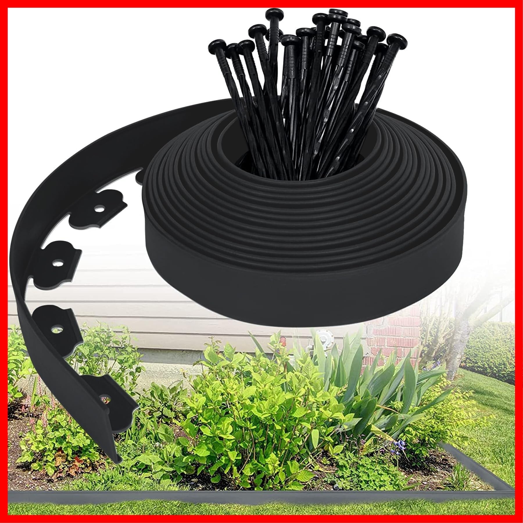 ガーデンエッジ フェンス 花壇フェンス 土留め 芝の根止めにも DIY 庭造り 園芸 新型厚肉Lタイプ 簡単な取り付け (高さ5cm×長さ10m, ブラック)