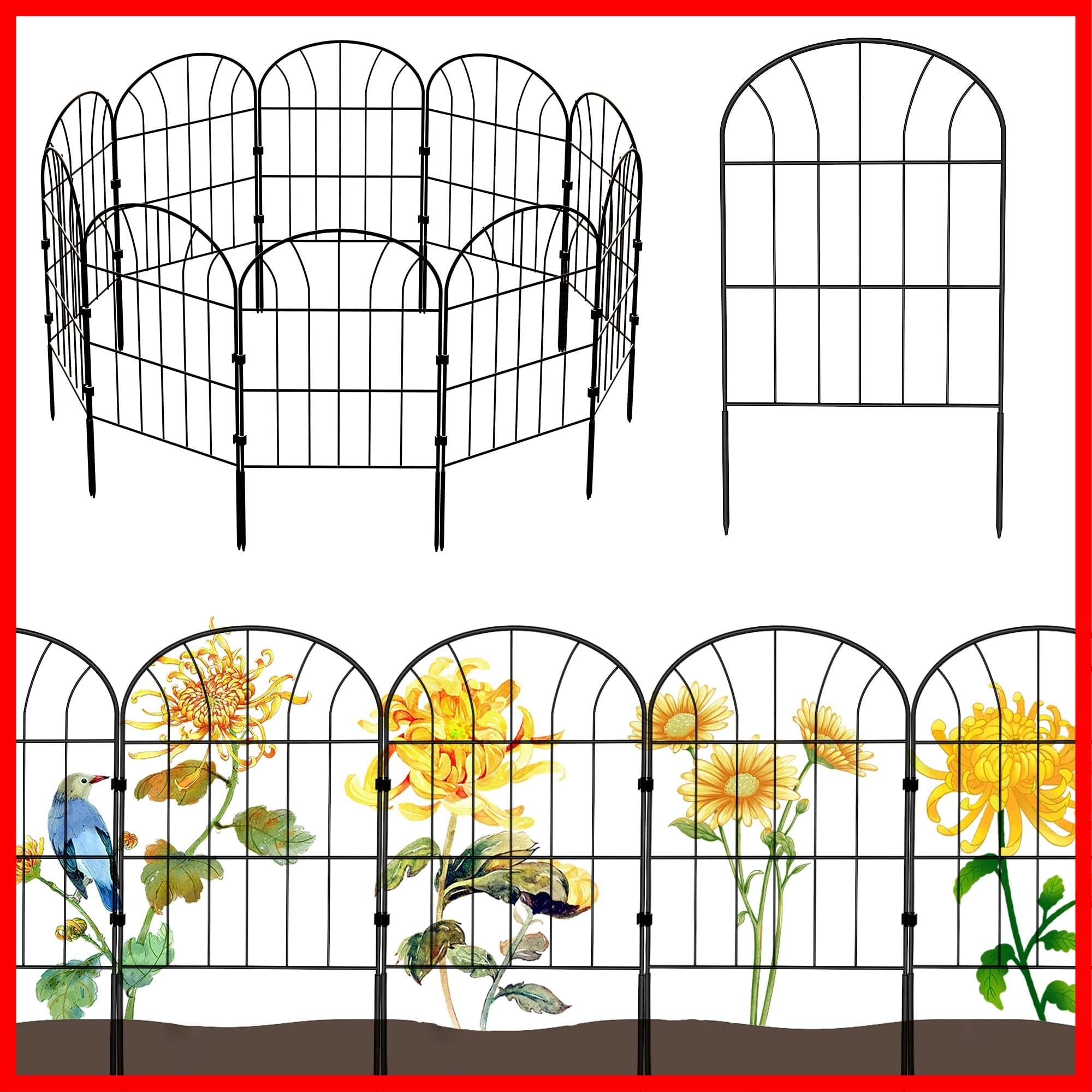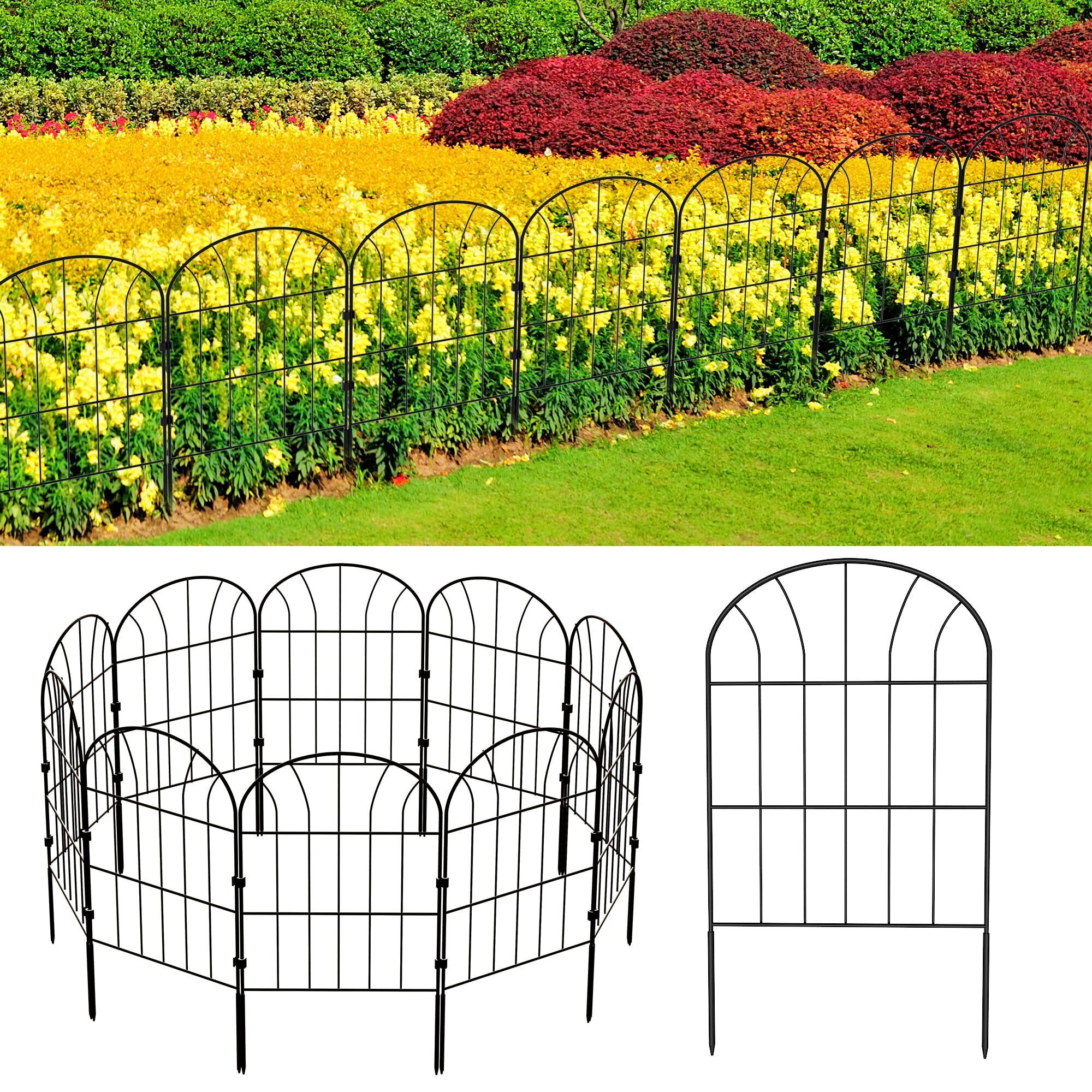 MITOUER ガーデンフェンス アイアンフェンス 10枚セット ブラック 防錆 植物や花を保護 花壇 菜園 柵 塀 庭 犬 ガーデン 仕切りフェンス 簡単設置 高さ0.6m×長さ0.32m 全長3.28m 日本語説明書付き
