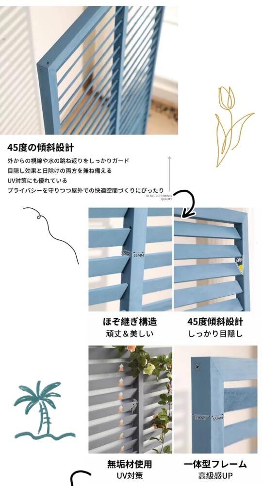 このフェンスはガーデンの間仕切りとしてだけでなく、バルコニーやテラスの日除けとしても大活躍です。また、ペットを安全に保つための囲いとしても利用できます。さまざまなシーンでその魅力を発揮します。