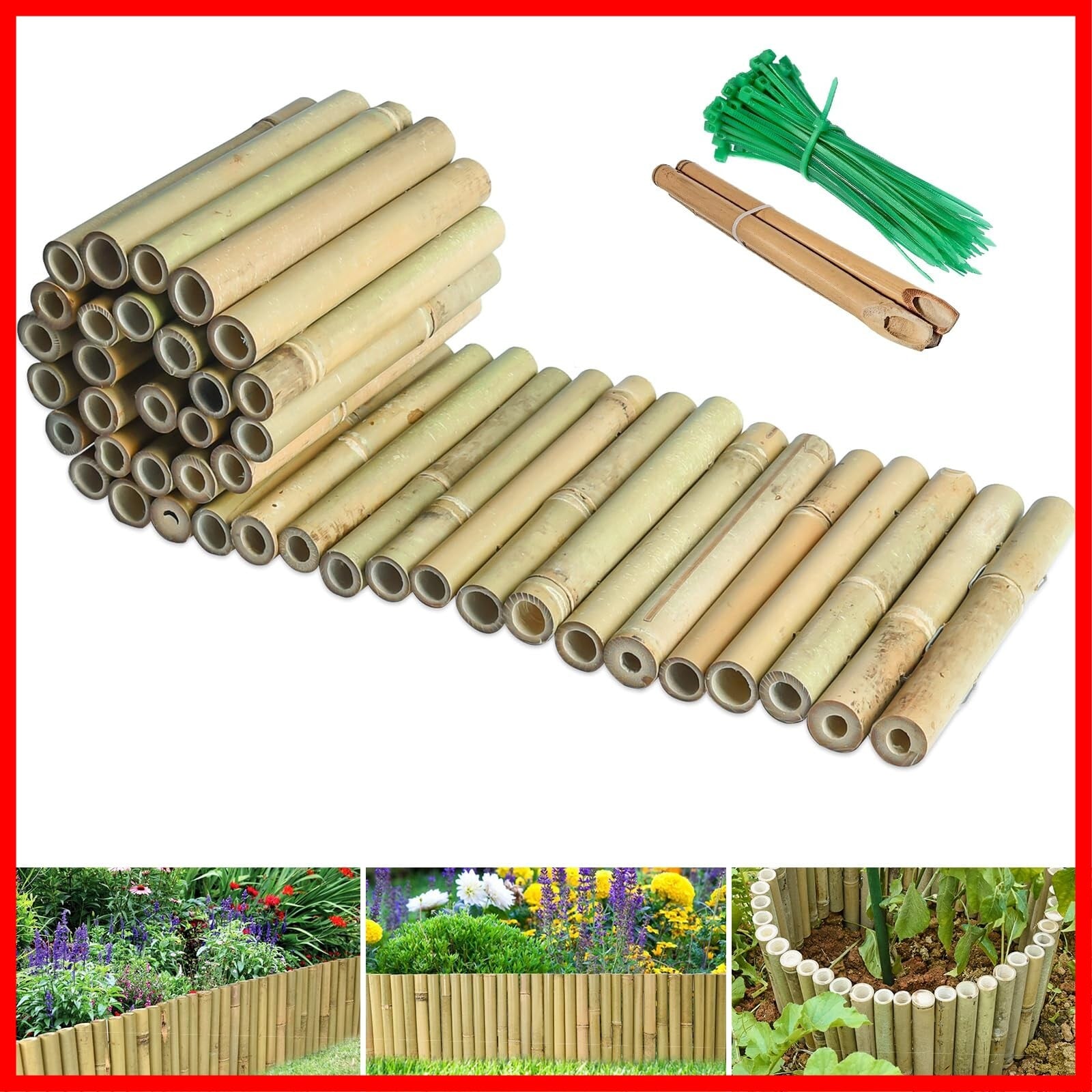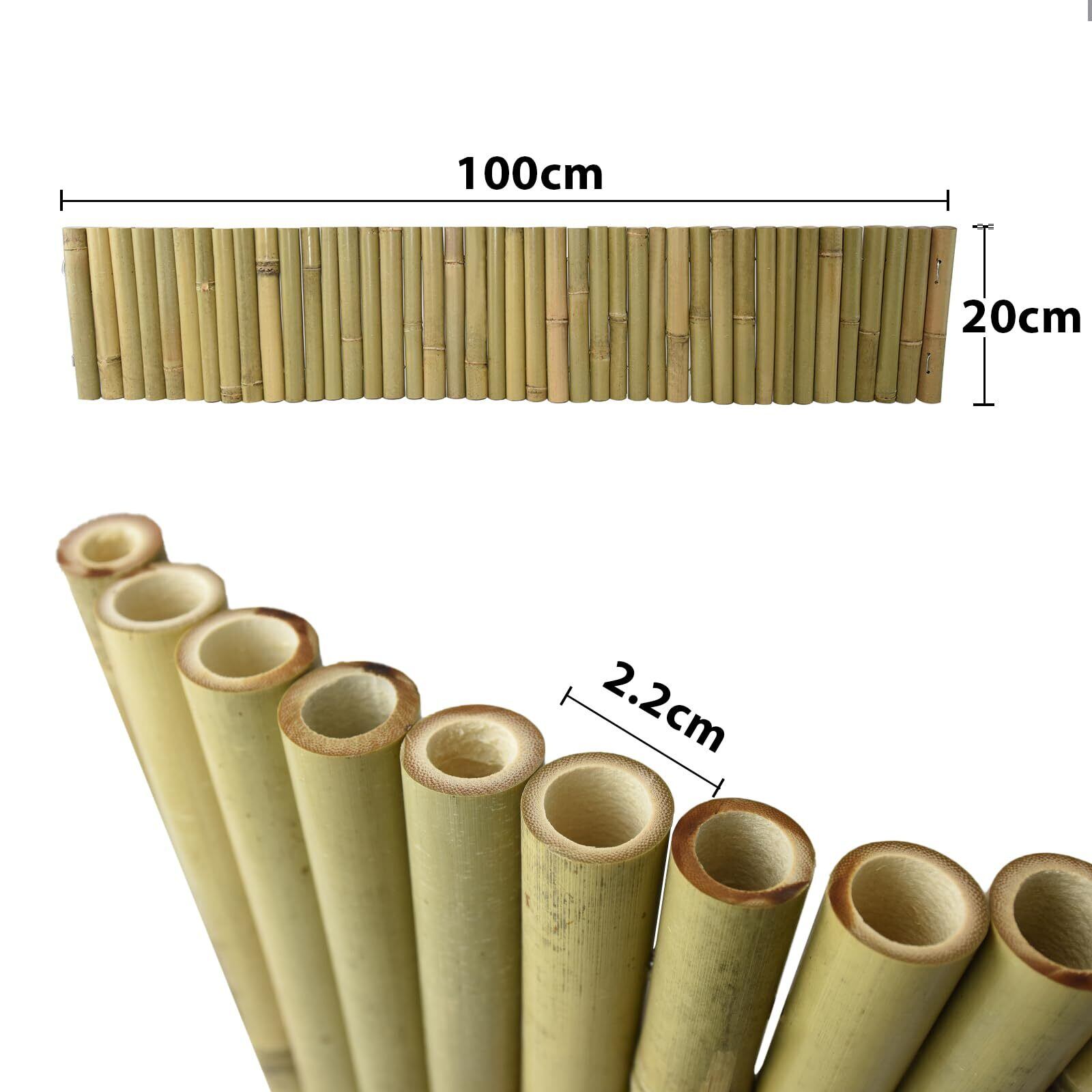 Jollybower ガーデンエッジ 高さ20 x 長さ100㎝ 花壇フェンス 天然竹 ガーデングエッジ 、DIY 庭作り、花壇 土留め、園芸 仕切りなどのガーデニング柵 ガーデンフェンス(補助竹が3本と20枚バンドが付き)