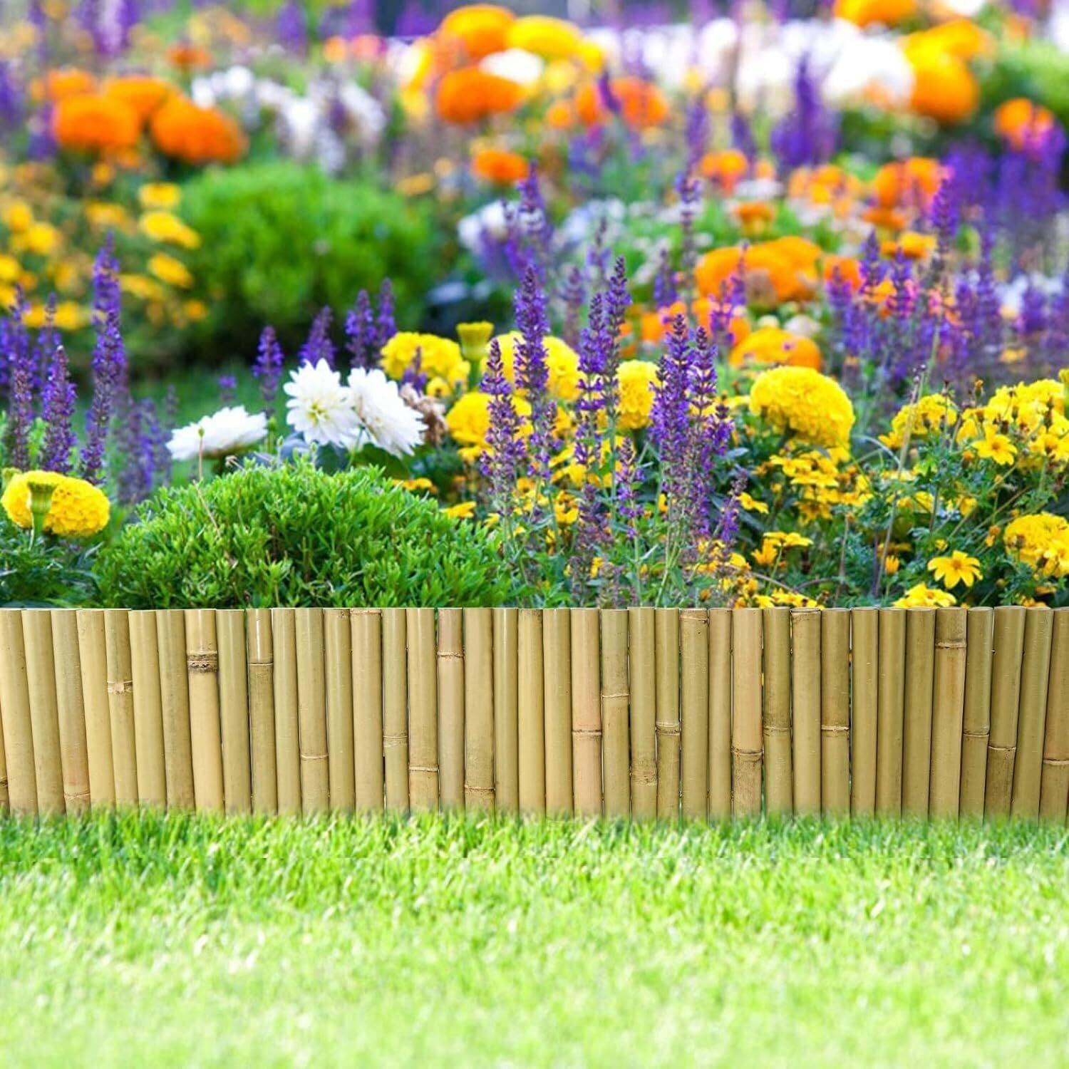 「このJollybowerのガーデンエッジで、あなたのお庭を華やかに仕上げましょう!」/特徴:高さ20cm、長さ100cmの天然竹製のガーデンエッジは、耐久性に優れ、美しいデザインが特徴です。手軽にDIYで庭作りを楽しみましょう。