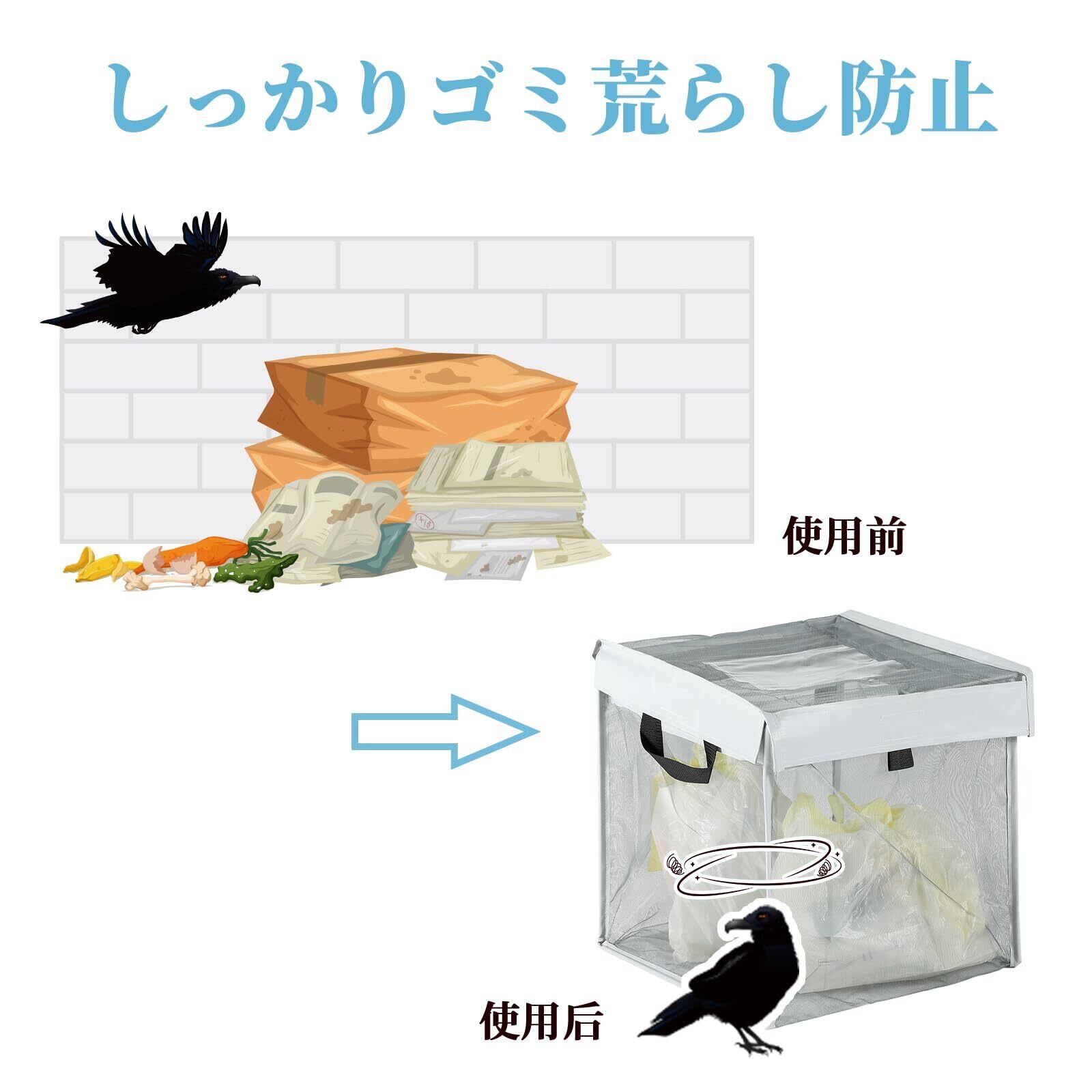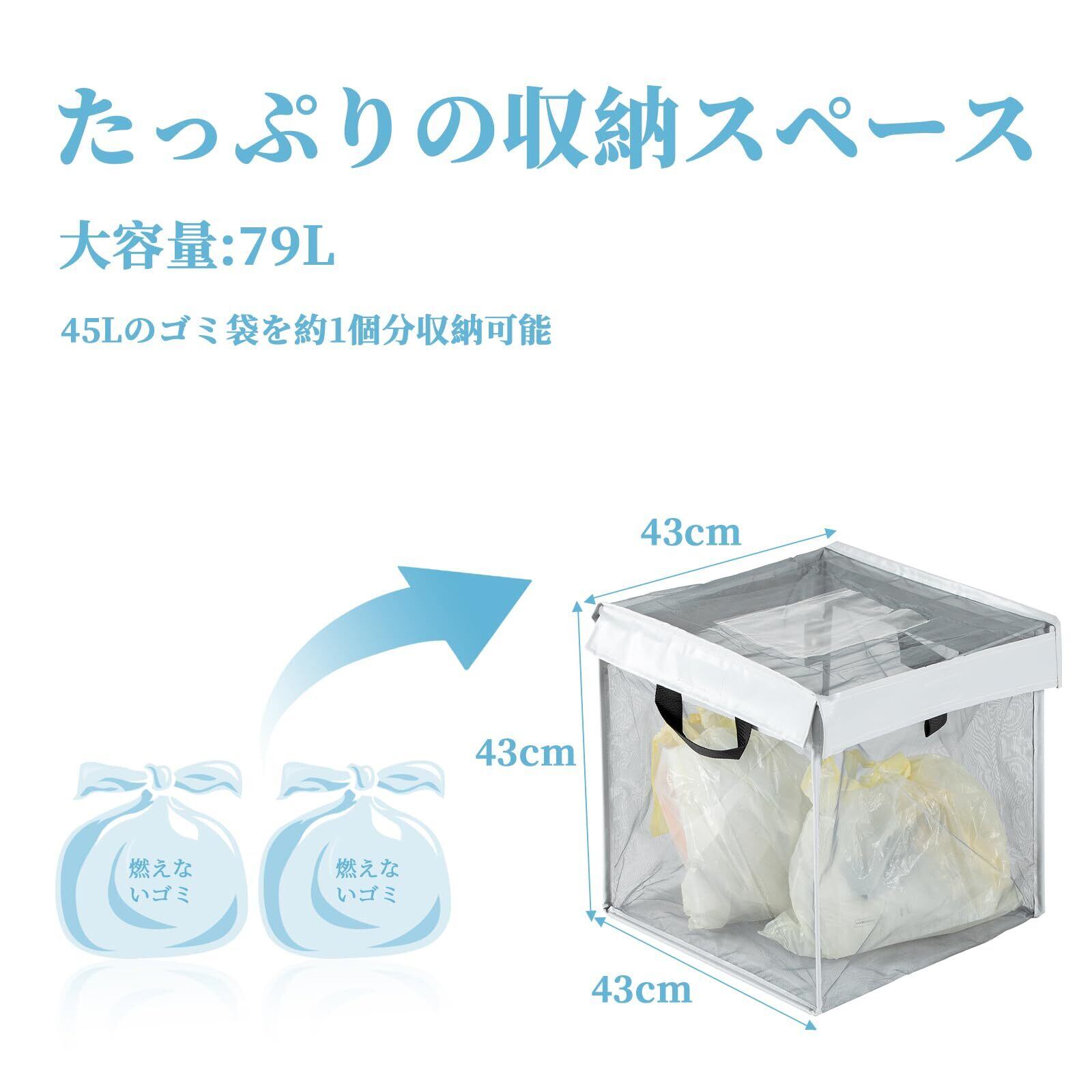 サイズ:43x43x43cm、容量:79L、材質:高強度素材、使用目的:カラスよけ、屋外使用可、折りたたみ式