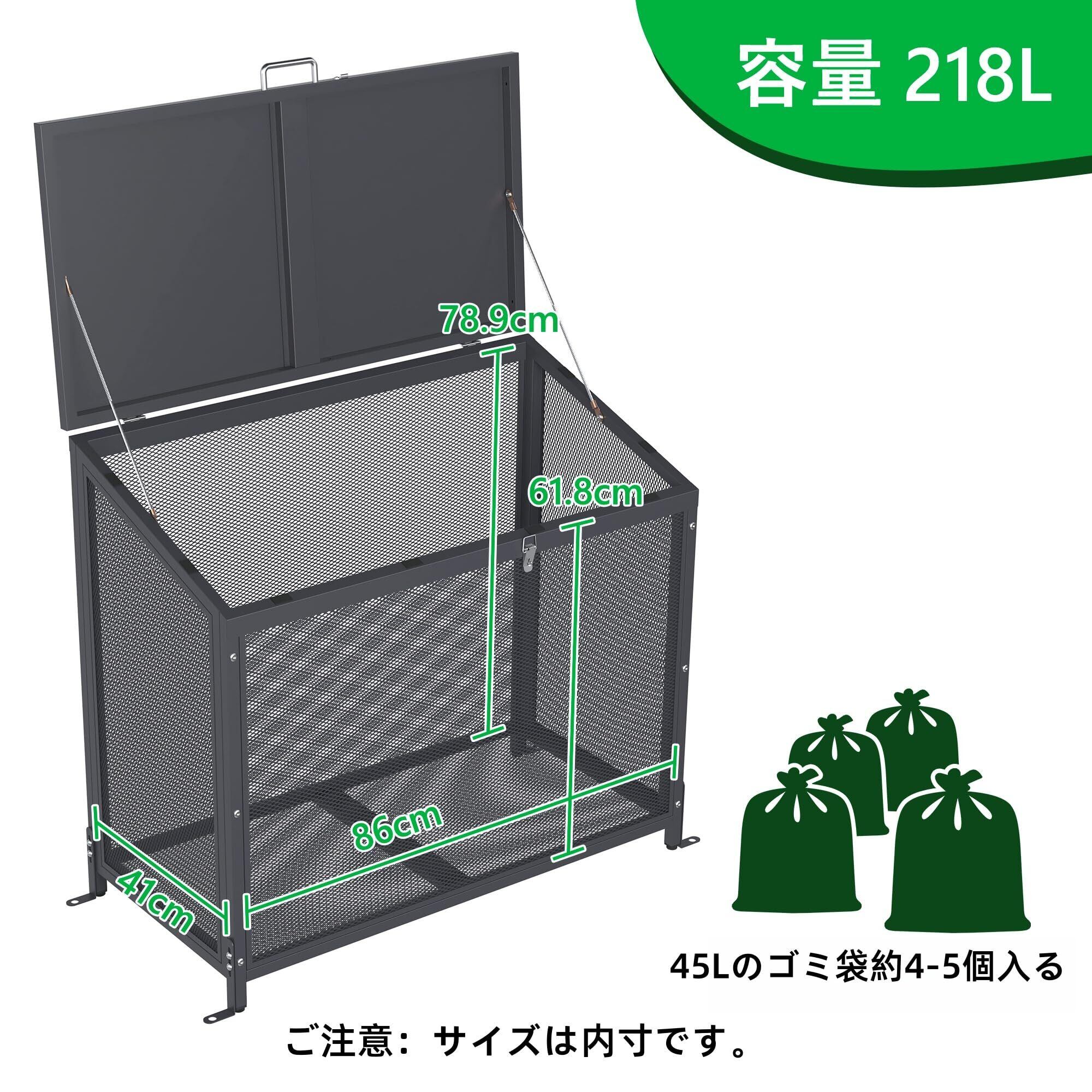 サイズ:218L、材質:高耐久性メッシュ、使用目的:カラス、野良猫対策、屋外使用可
