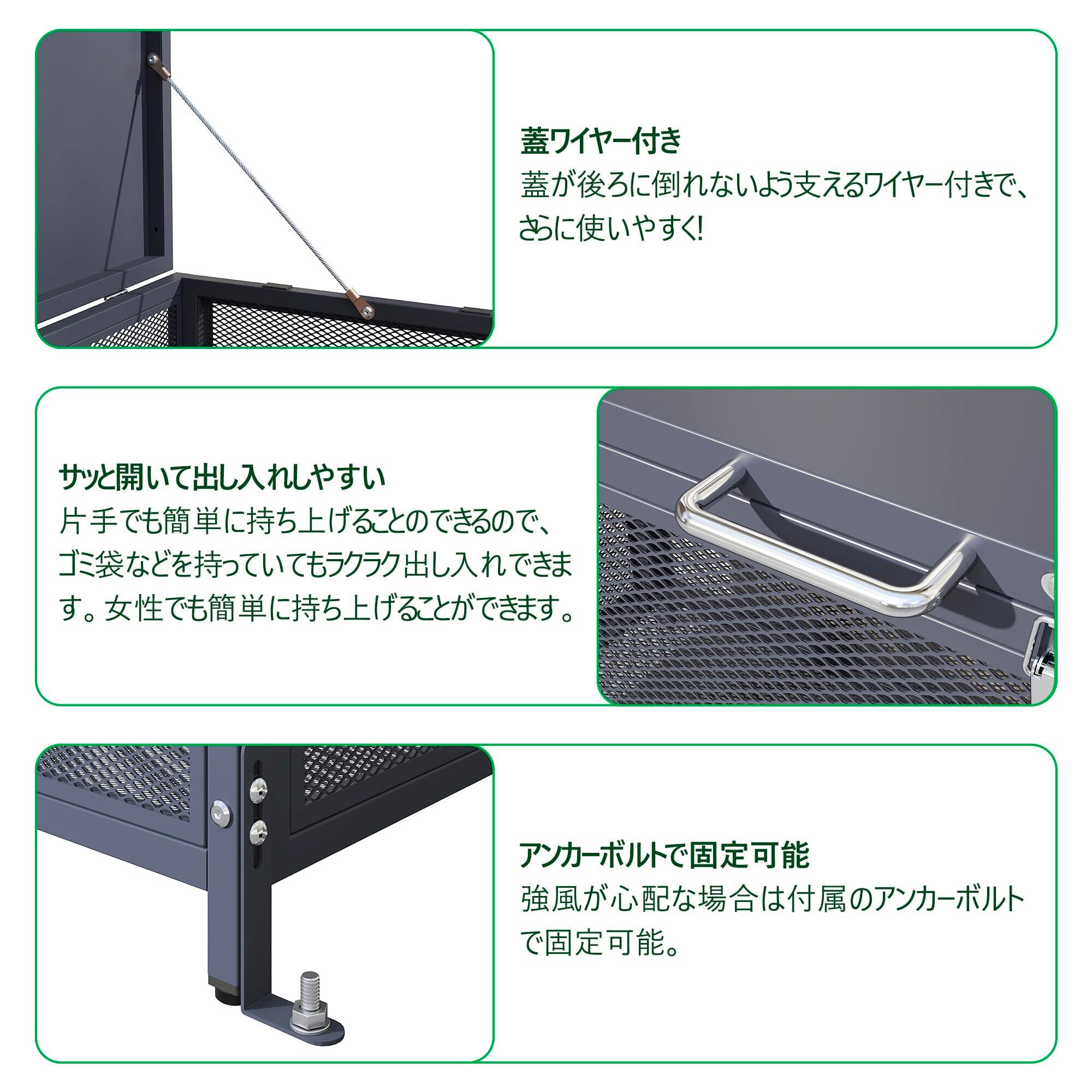 OSJ ゴミ箱 屋外 メッシュデザイン ゴミネット ボックス 大容量 大きい カラスよけ 野良猫対策 ゴミ荒らし防止 庭用可能 容量218L