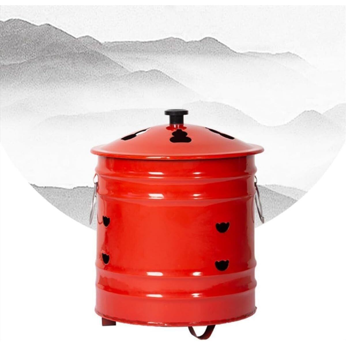 【在庫処分】BQQB 家庭用焼却炉、ドラム缶焼却炉、蓋とハンドル付き 燃焼バケツ 紙、落ち葉、木のゴミを燃やすのに使用されるパターン付き (40cm)