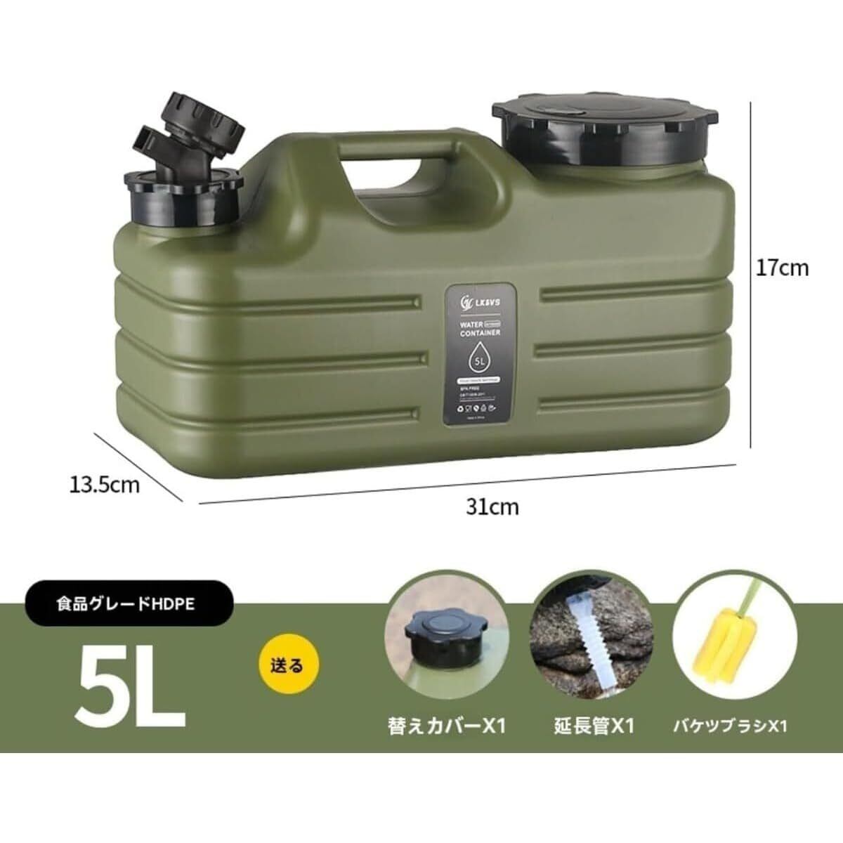 容量:5L、11L、材質:高耐久性プラスチック、使用目的:キャンプ、水供給、アウトドア、防災用