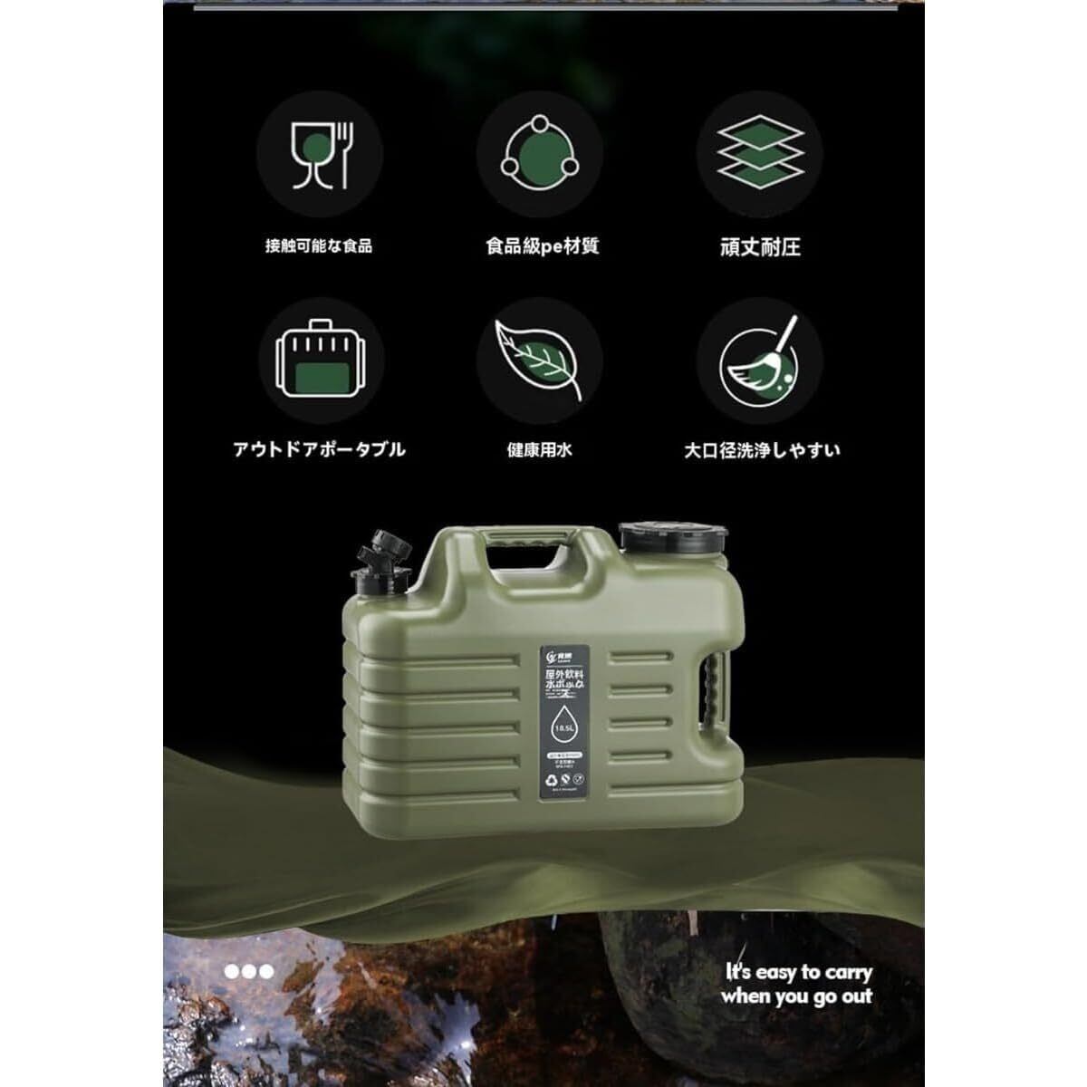 ポータブル設計により、軽量で持ち運びが簡単です。キャンプ場や出張先など、どこでも手軽に水を運ぶことができるため、幅広いアウトドアシーンで活躍します。
