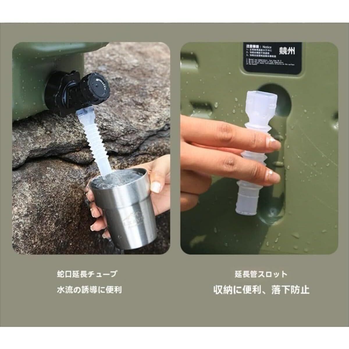 このウォータータンクは、キャンプだけでなく、非常時の備蓄や屋外イベント、ビーチなどでの使用にもぴったりです。飲み水の貯蔵や簡単な給水の際にもとても役立ちます。