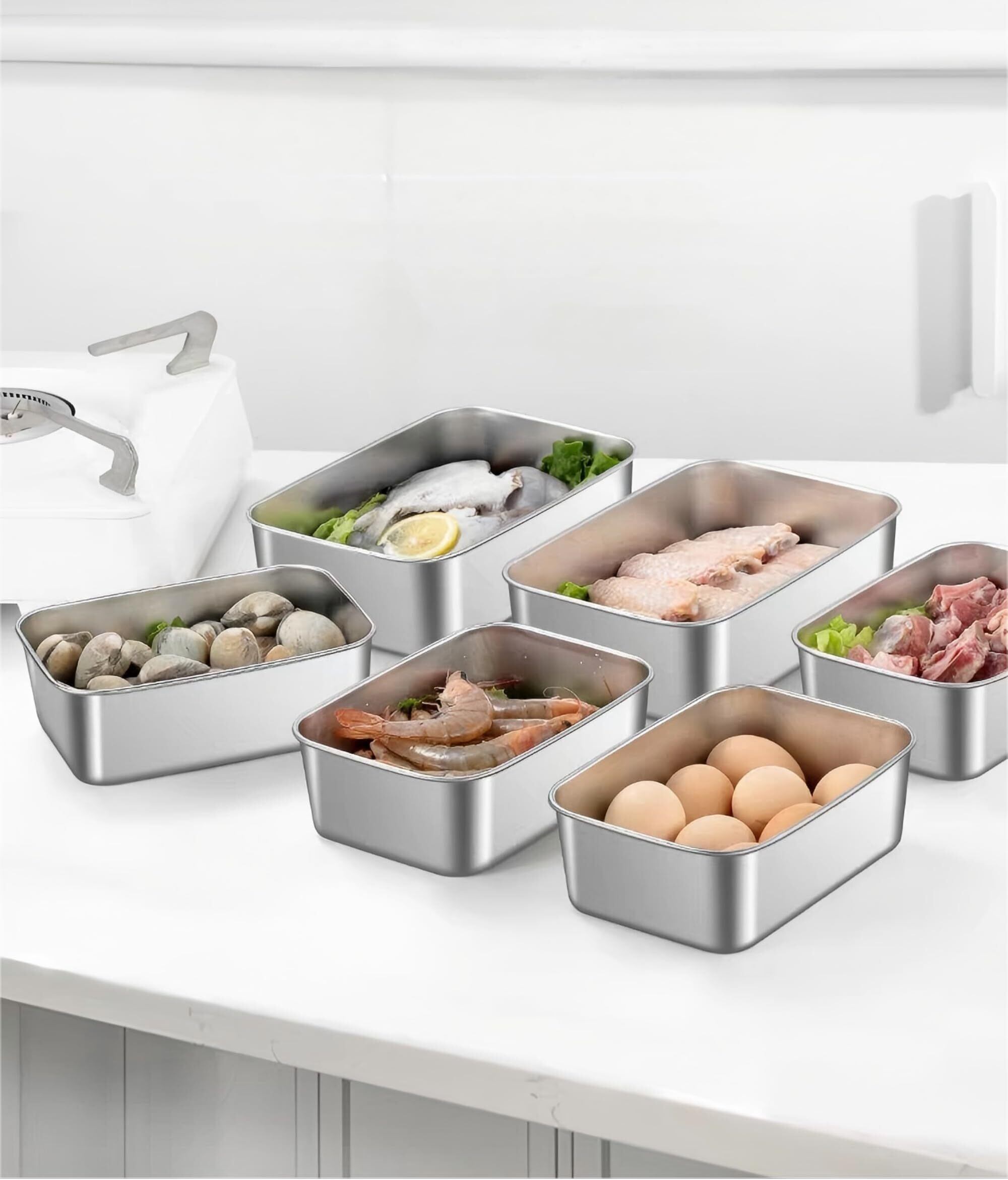「このCHFNJJのステンレス製保存容器で、食品の保存をスマートに、そしておしゃれに行いましょう!」/特徴:1100mlの大容量を持つステンレス製のバット3点セットは、冷蔵庫の整理や調理の際に最適なアイテムです。