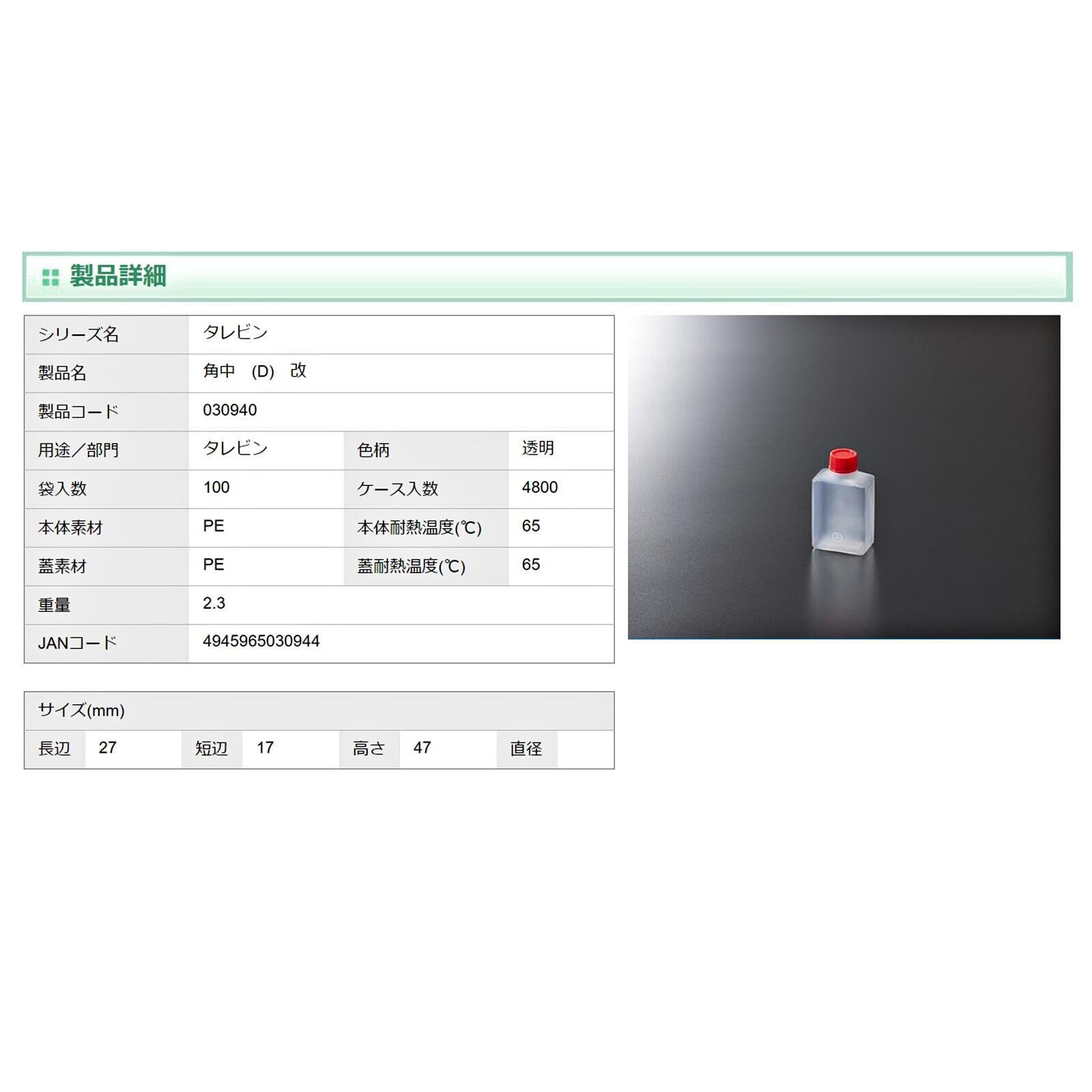 【新着商品】中央化学(Chuo Kagaku) タレビン 角 中 (D)改 100個入