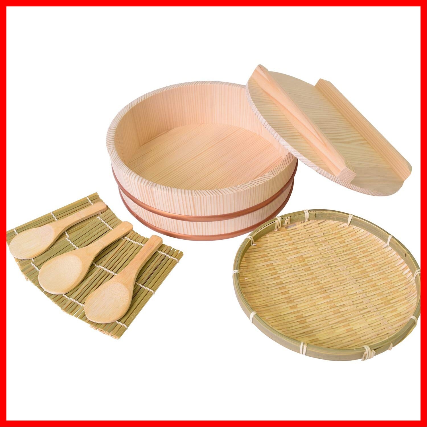 セット内容:寿司桶・蓋・盆ザル×各1個、ミニスダレ・しゃもじ×各3個