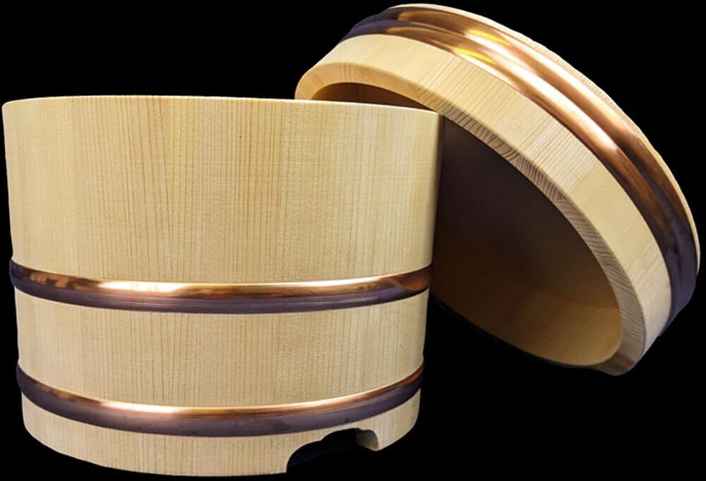 「このヤマコーの江戸びつを使って、炊きたてのご飯をもっと美味しく楽しみましょう!」/特徴:21cmのサイズで、約5合のご飯をおさめることができるこの江戸びつは、伝統的なデザインが魅力です。和の趣を感じさせる風情が、食卓を華やかに彩ります。