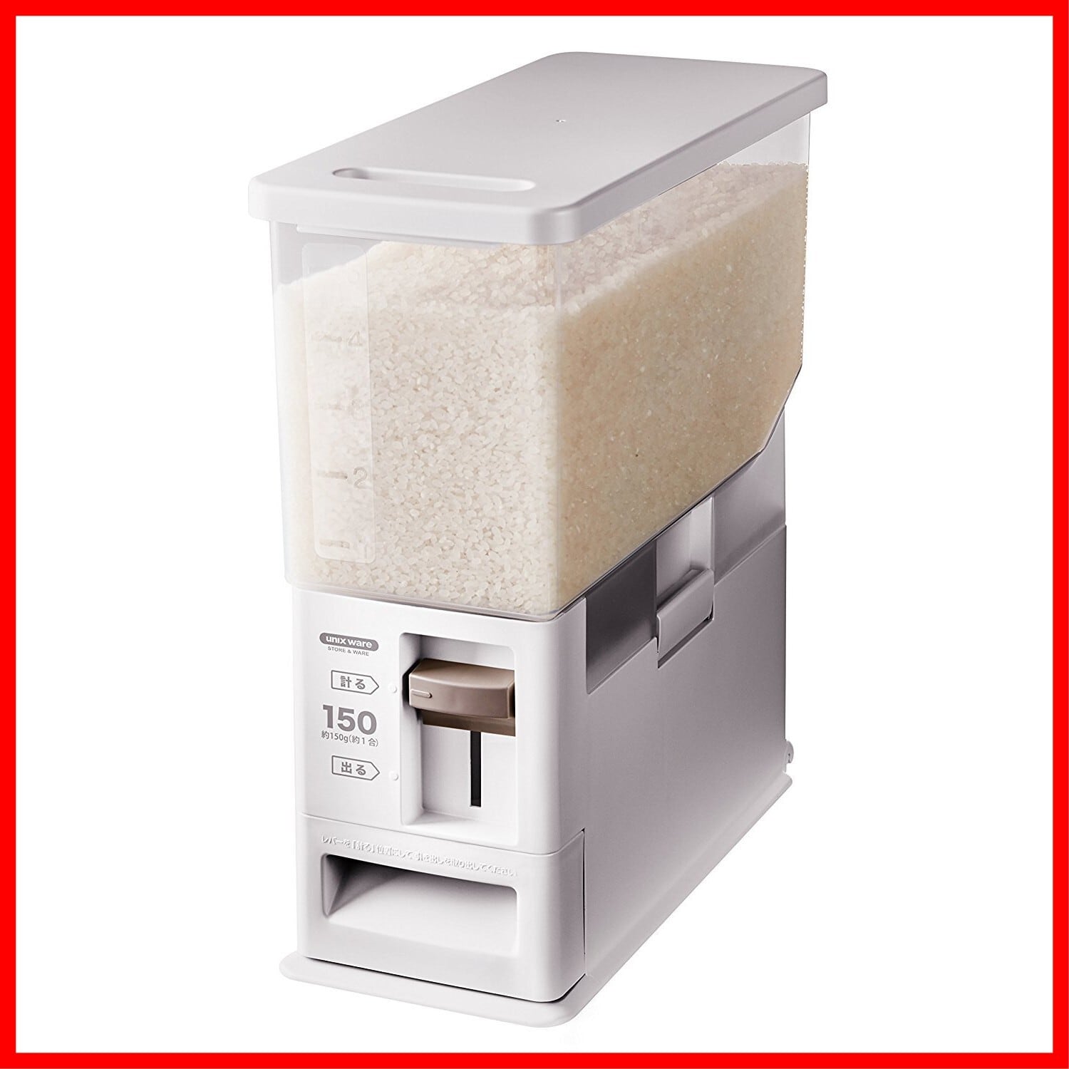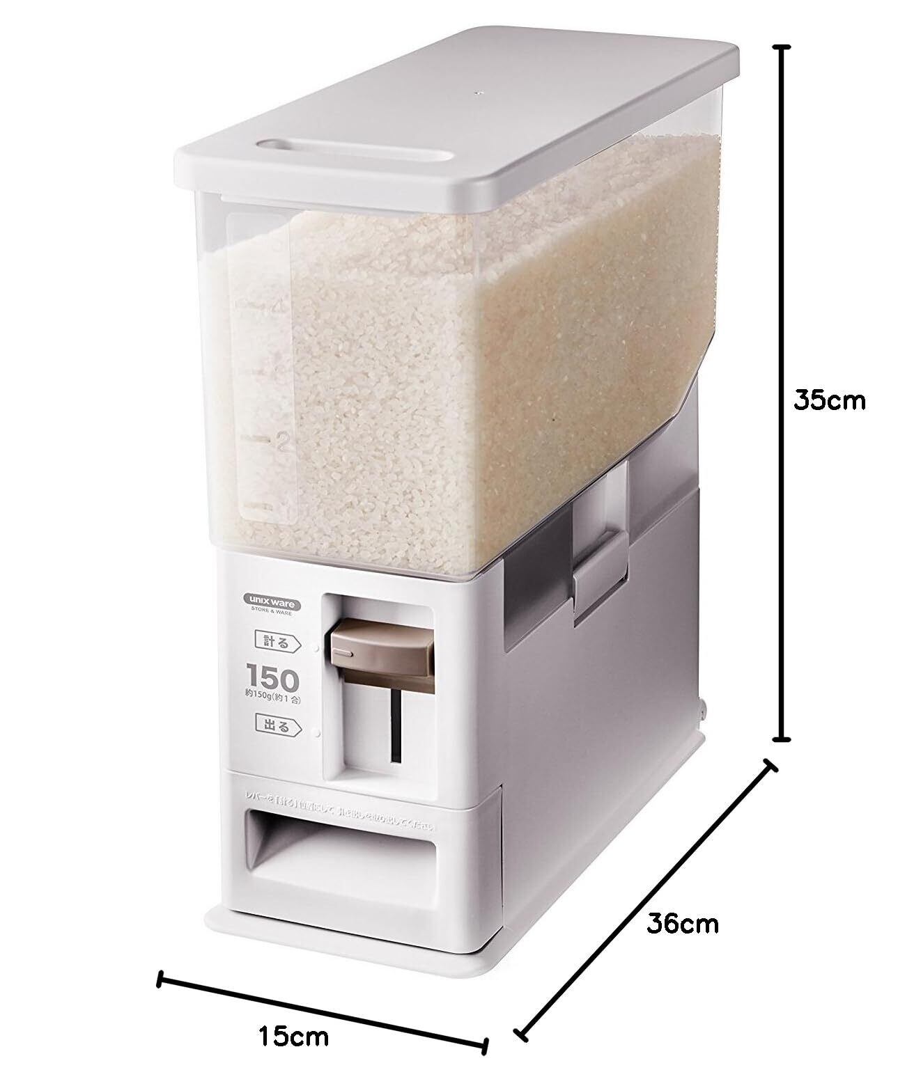この計量こめびつは、精密に計量できる設計となっており、ご飯を必要な分だけ簡単に取り出すことができます。大容量ながらも使い勝手が良く、フタの機構によりご飯の鮮度をしっかりと保ちます。バルブ式のスプーン付きで、正確な量を簡単に量ることが可能です。