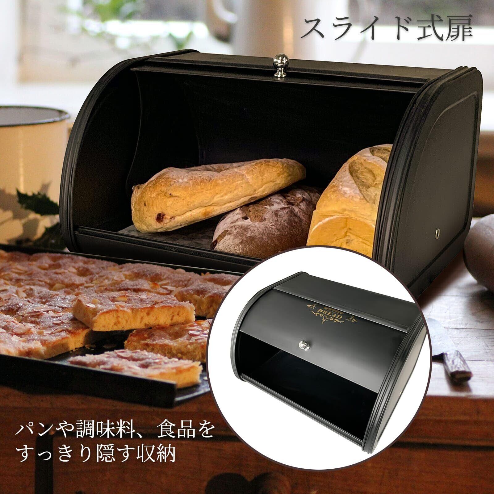 SOTECHブレッドケース、スライド式扉 パン箱 食品グレード 軽量、ホームキッチン屋外ピクニックブレッドボックスパンケース(黒のかわいい収納ボックス)