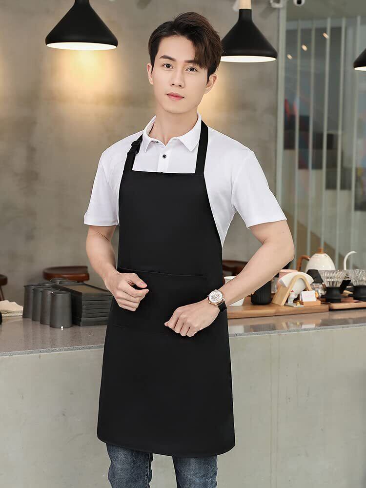 [ZIRAIFEN] エプロン 首掛け おしゃれ 男女兼用 調節可能 大容量ポケット付き 汚れにくい シワ防止 キッチン ダイニングルーム コーヒーショップ 家事に最適