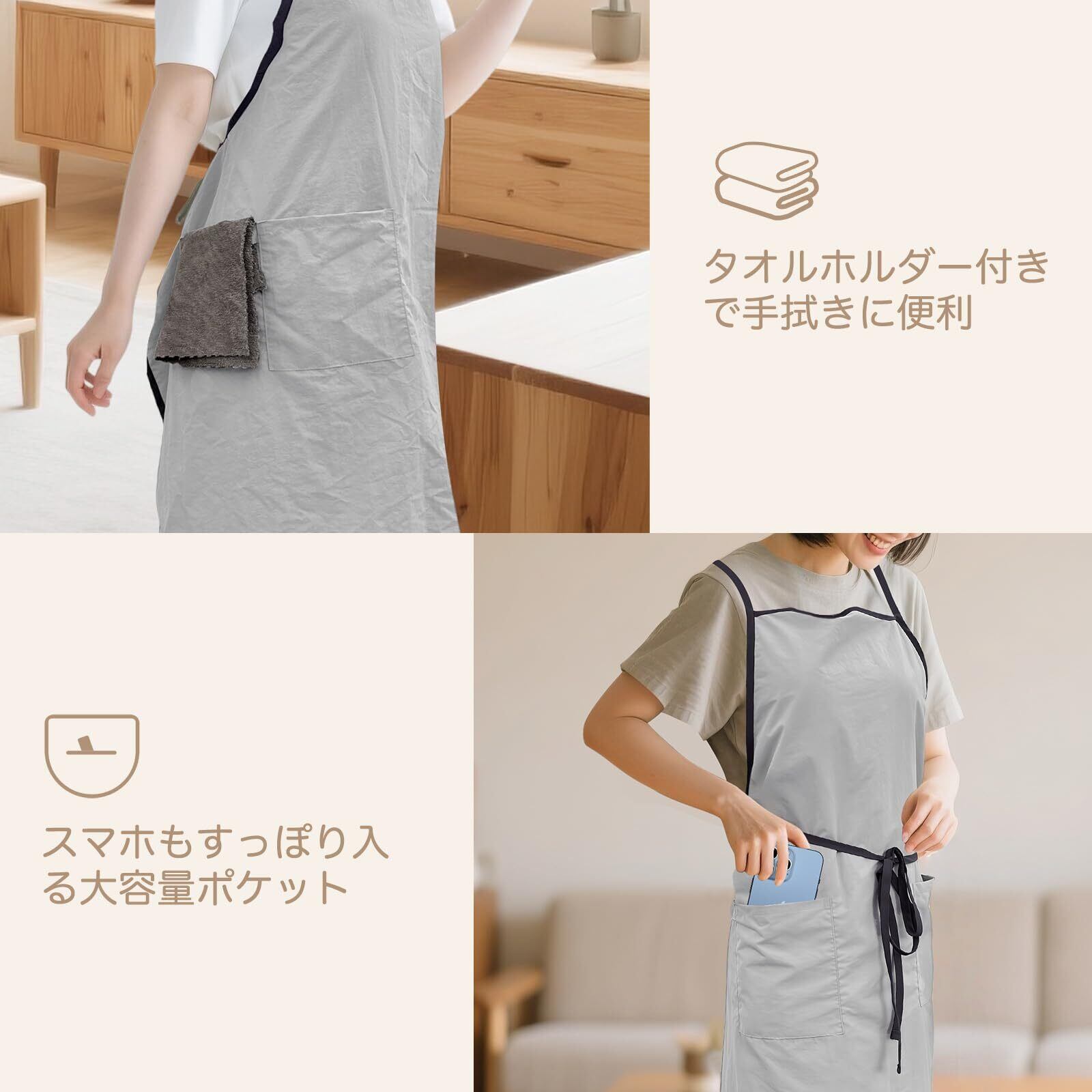 [ANJOU] エプロン おしゃれ レディース 撥水 防シワ 速乾 仕事用 保育士 料理 家事用 前掛け クロス紐 調節可能 ポケット付き タオル掛け付 6色展開