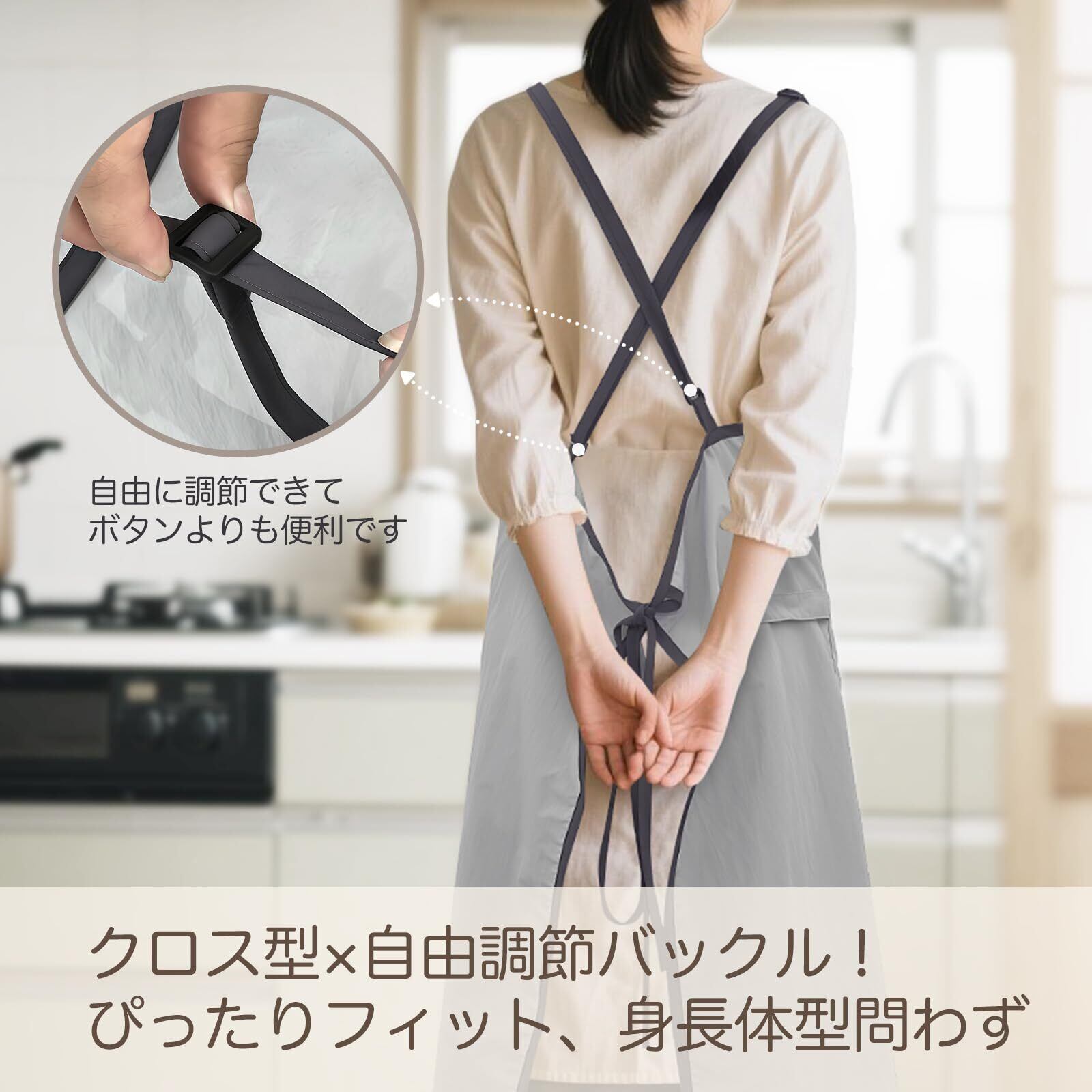 デザインには調節可能なクロス紐を採用しており、さまざまな体型の方にフィットします。快適に着こなせるので、仕事に励む時間もストレスフリーです。