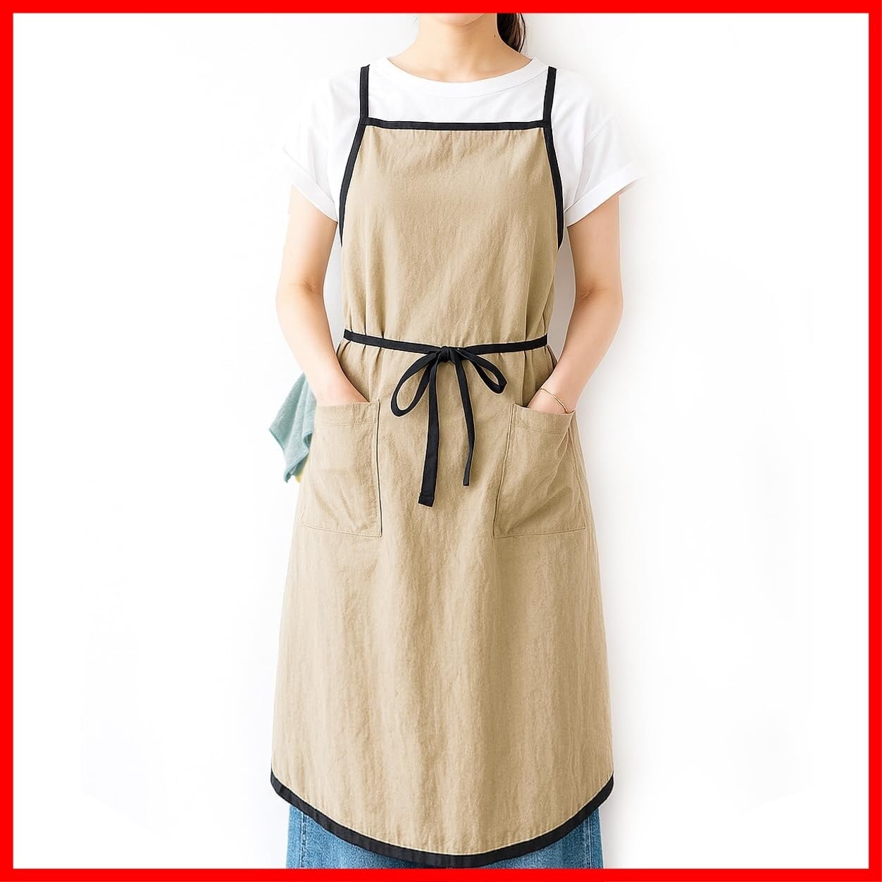 「この[ANJOU]エプロンを使って、日常の料理や家事をもっとスタイリッシュに楽しみましょう!」/特徴:おしゃれで機能的なデザインのこのエプロンは、忙しい女性のために作られたアイテムです。