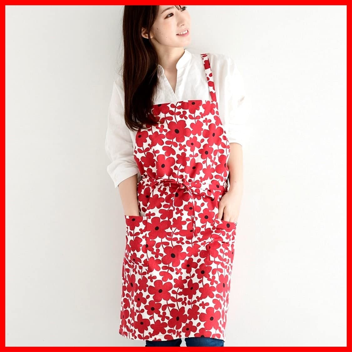 レップ(Rep) エプロン 北欧 ポケット2個付き 花柄 大人用 カフェエプロン 着丈73cm (アビチュアル セルマ) レッド 1056 RE プレゼント