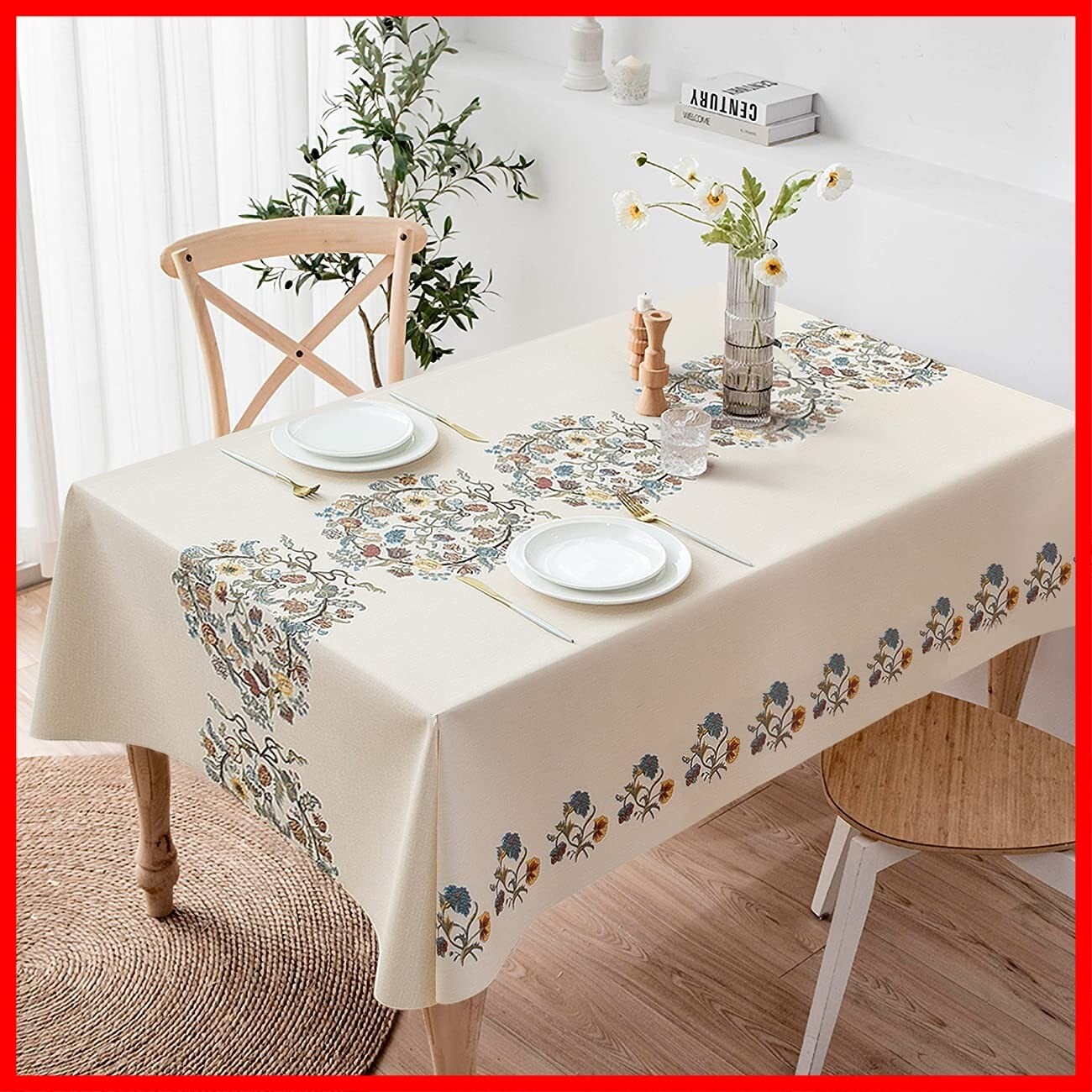 【在庫処分】LOHOMEVE テーブルクロス ビニール おしゃれ テーブルカバー 撥水 桌布 正方形 長方形 北欧 汚れ防止 防水 防油 耐熱 pvc製 テーブルマット テーブルランナー カーキー 刺繡 140×180CM | Cherry Blossoms