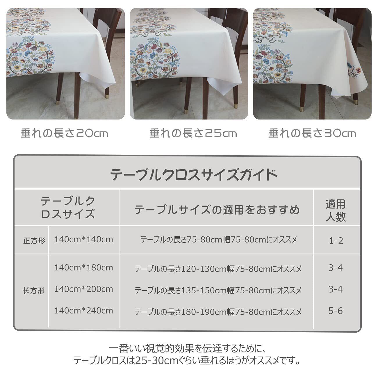 140×180cmのサイズ展開で、家庭用テーブルはもちろん、カフェやレストランでも使用可能です。正方形または長方形のテーブルにもぴったりフィットし、自在にアレンジできます。