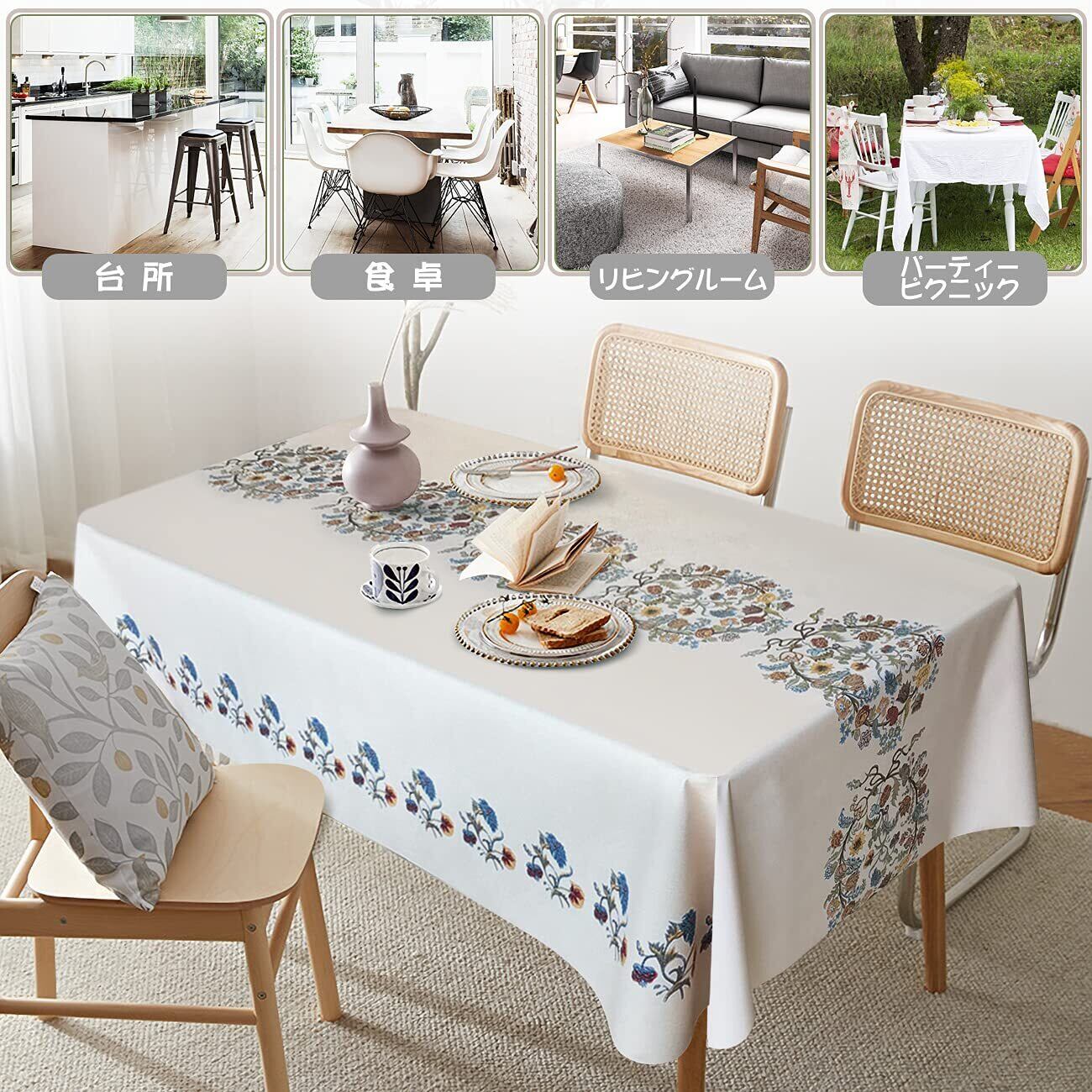 LOHOMEVE テーブルクロス ビニール おしゃれ テーブルカバー 撥水 桌布 正方形 長方形 北欧 汚れ防止 防水 防油 耐熱 pvc製 テーブルマット テーブルランナー カーキー 刺繡 140×180CM