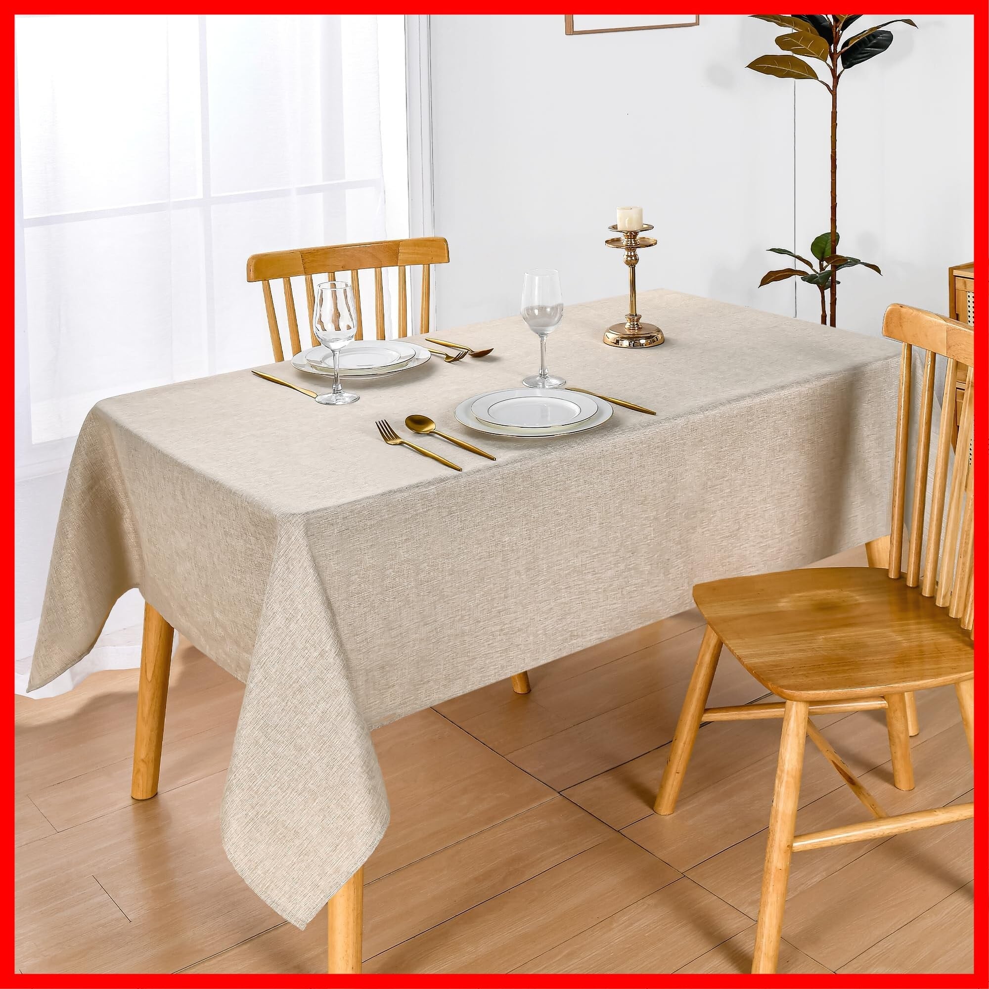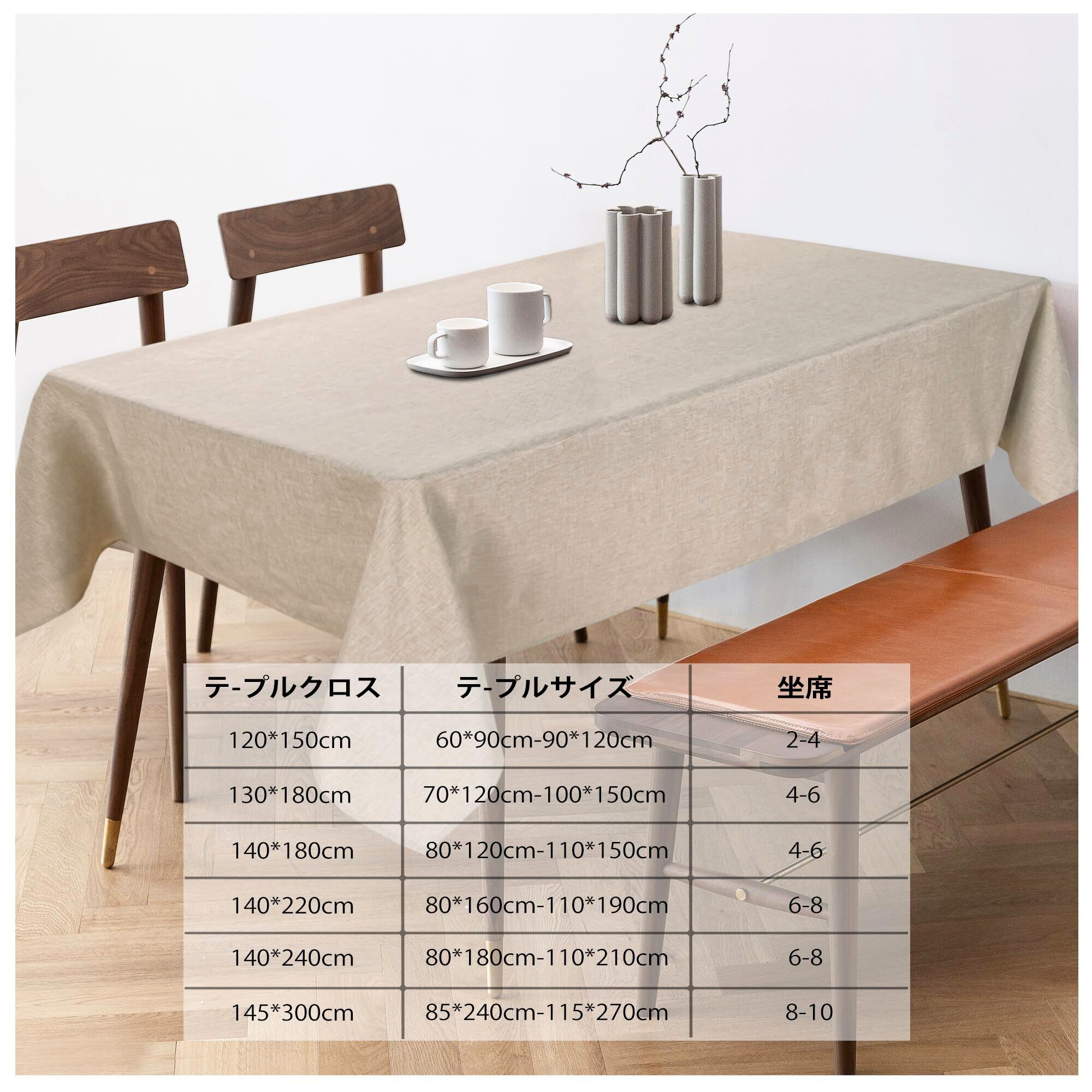 【特価セール】DWCN テーブルクロス 長方形 撥水 無地 モダン・シンプル 汚れ防止 テーブルカバー 類麻 耐熱 丸洗い 洗濯機可 家庭用 パーティー用 ダイニングテーブル用 130*180cm ベージュ | Cherry Blossoms