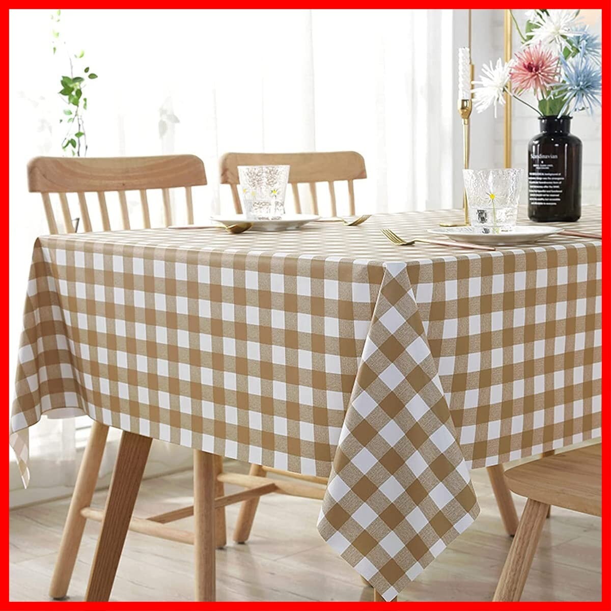 「このForhomelifeのテーブルクロスで、食卓を簡単におしゃれに演出しましょう!」/特徴:落ち着いたブラウンの格子柄デザインが、北欧風の素敵な雰囲気を醸し出し、心地よい食卓空間を提供します。