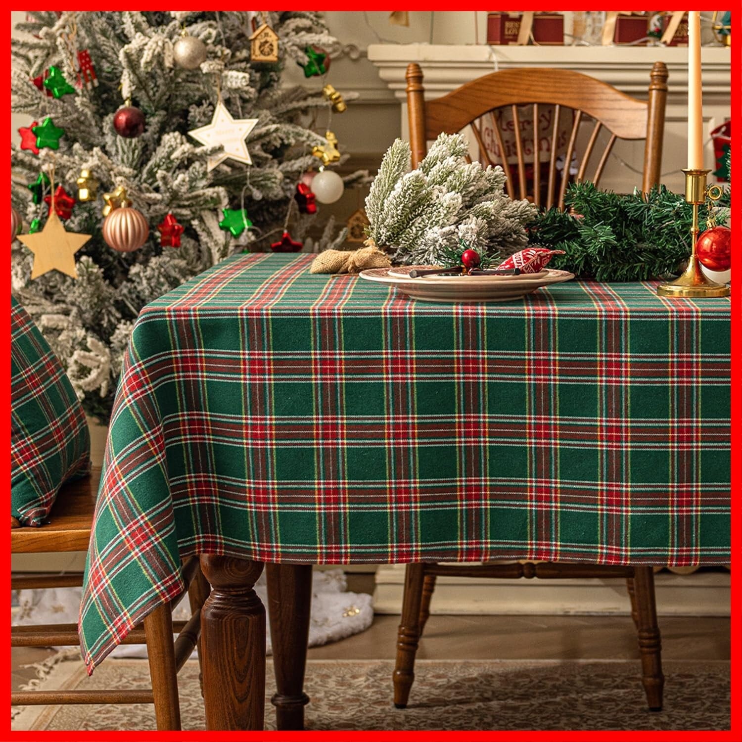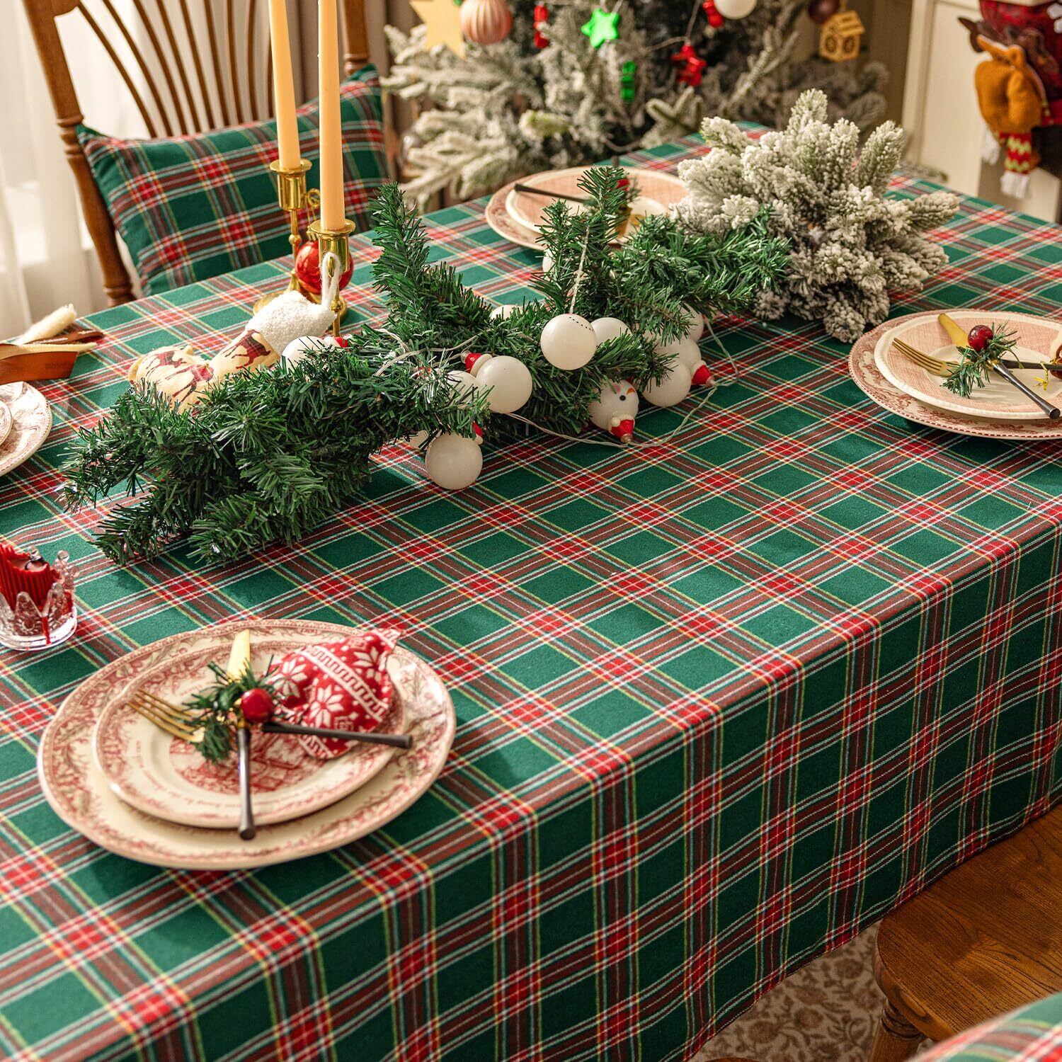Softalker クリスマス テーブルクロス チェック 緑 180 x 135 cm 長方形 正月 桌布 防水・防汚・お手入れ簡単 高耐久 北欧風 おしゃれ 混綿 テーブルカバー 家庭用・カフェ・クリスマス・式典・パーティー用