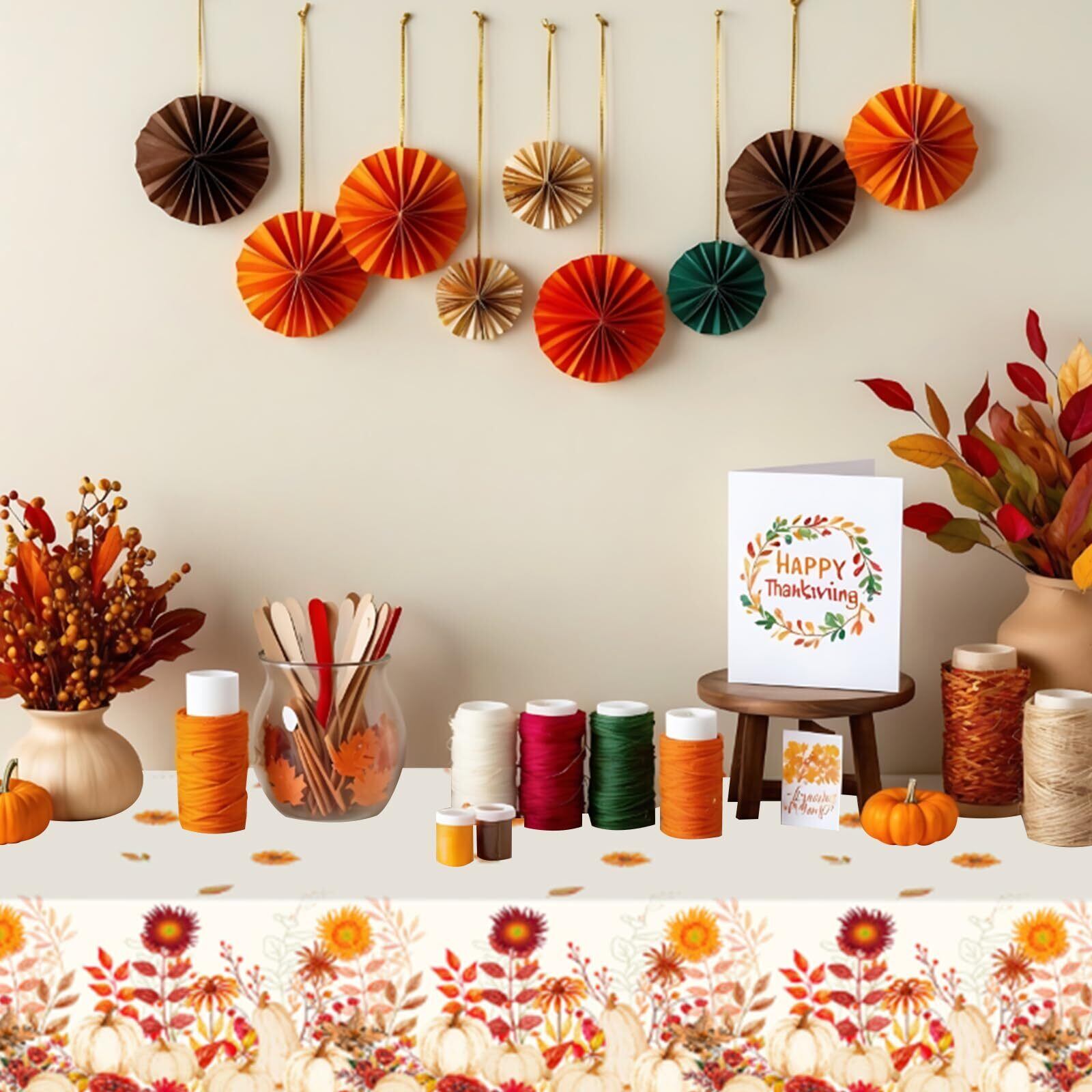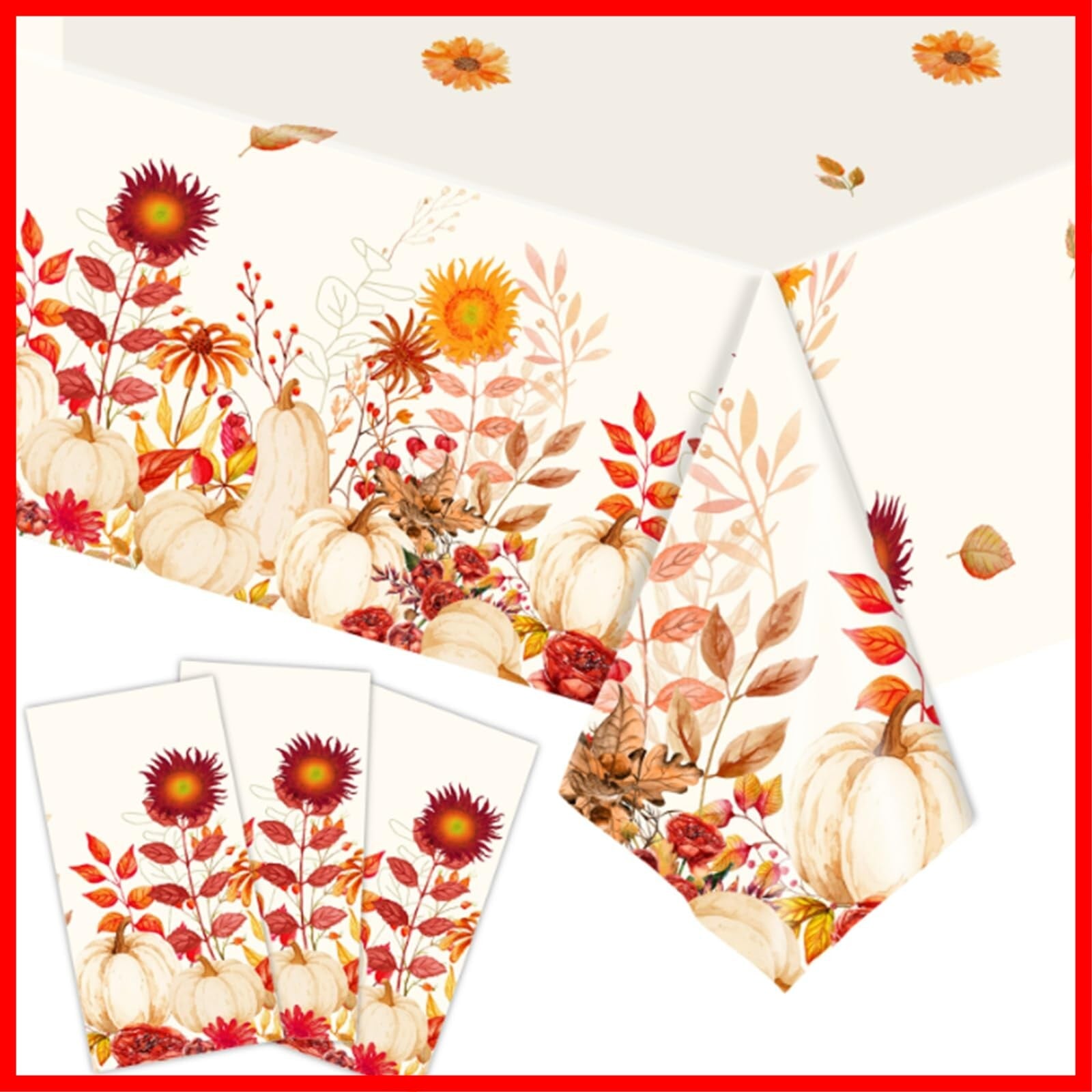 【数量限定】seimeinoki 3枚入り 使い捨てテーブルクロス テーブルカバー 感謝祭 秋のテーマ カボチャ ひまわり カエデの葉 137*274cm 秋のテーブルクロス プラスチック防水テーブルカバー 防水 防油 多用途 おしゃれ アウトドア 食卓 展示会 パーティー イベント 装飾用