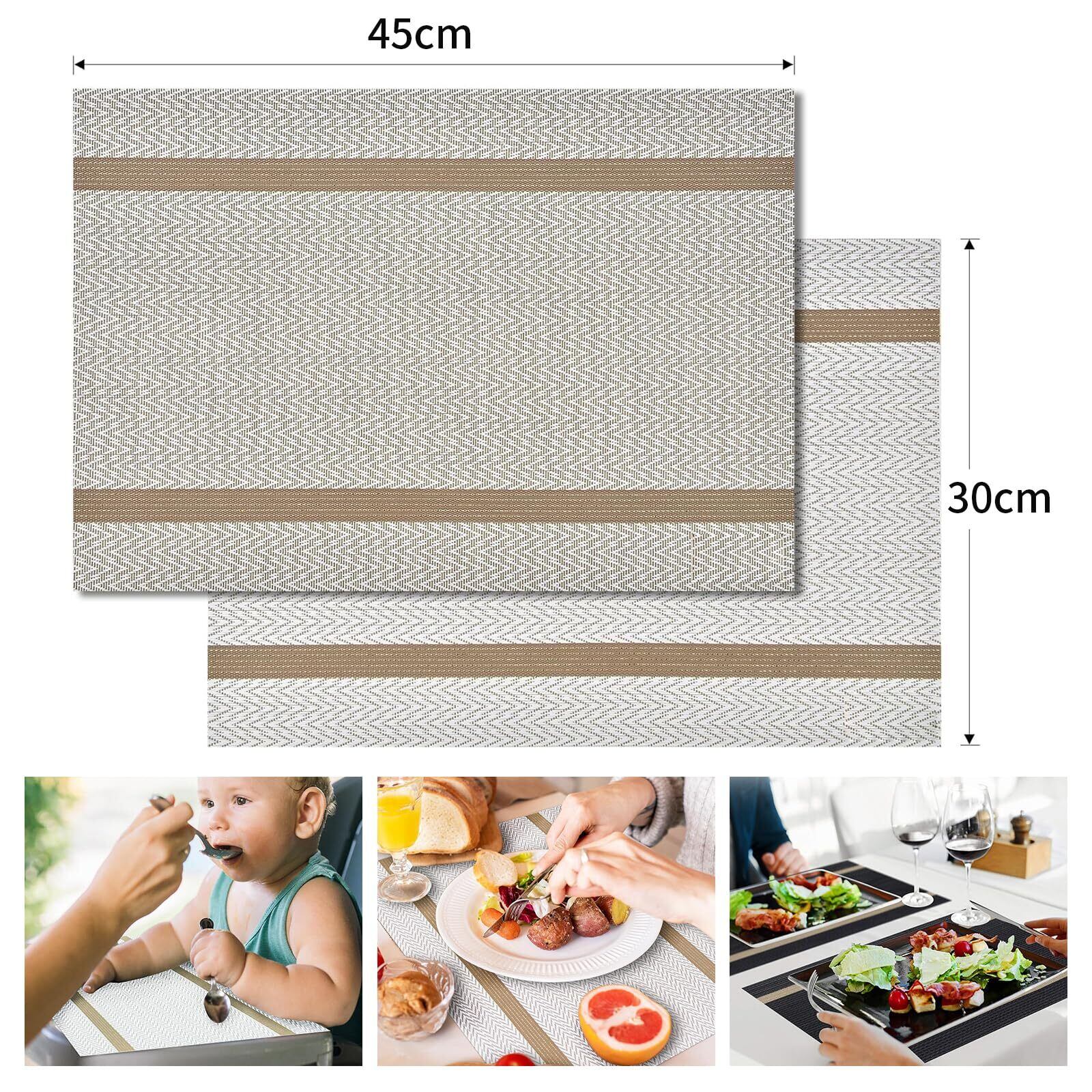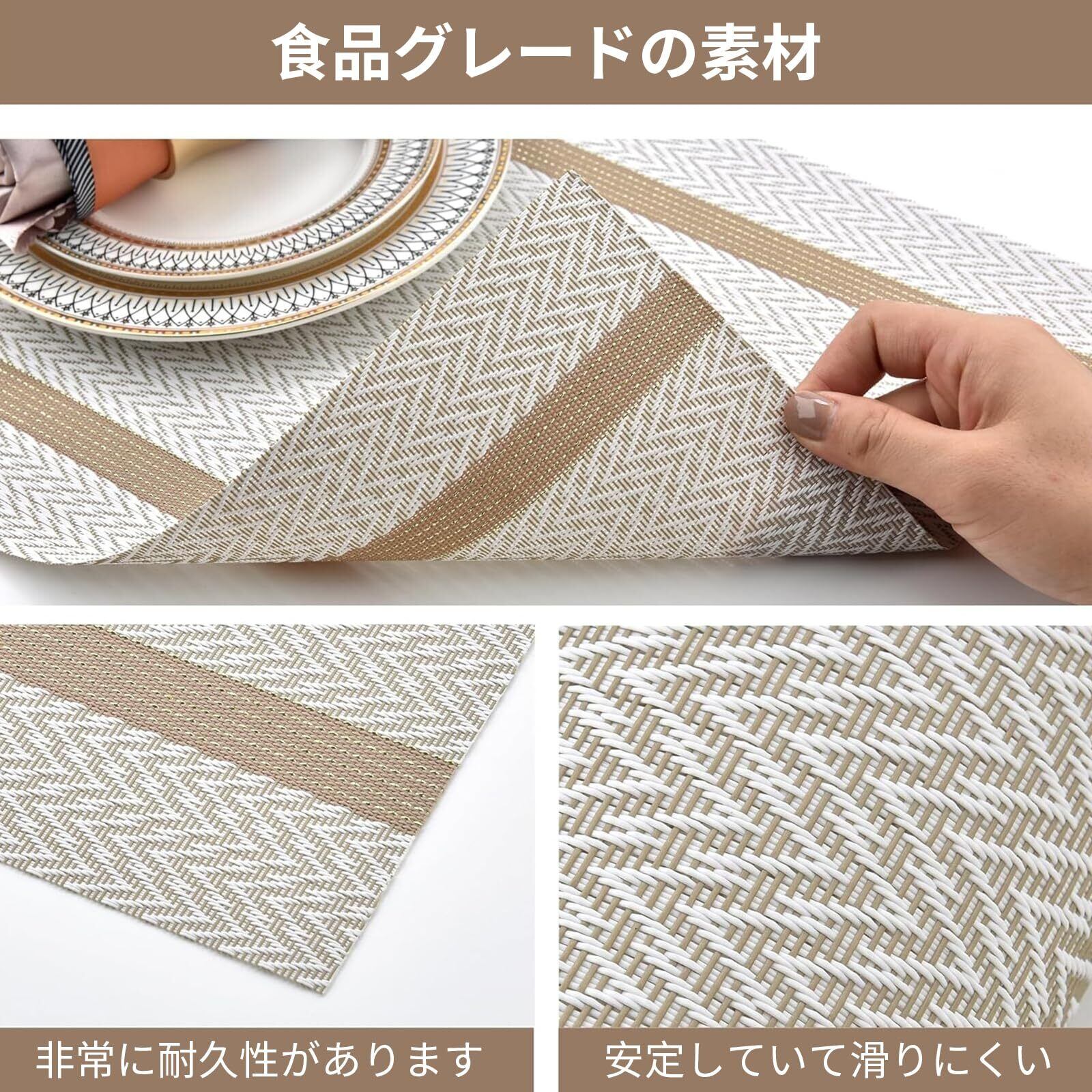 耐熱性:優れた通気性と断熱性でテーブルの表面を傷めない、無害なプレースマットです。 耐熱性に優れ(200℃まで)、摩擦に強い。 食器棚に置いて、食器が滑り落ちるのを防ぐことができます。