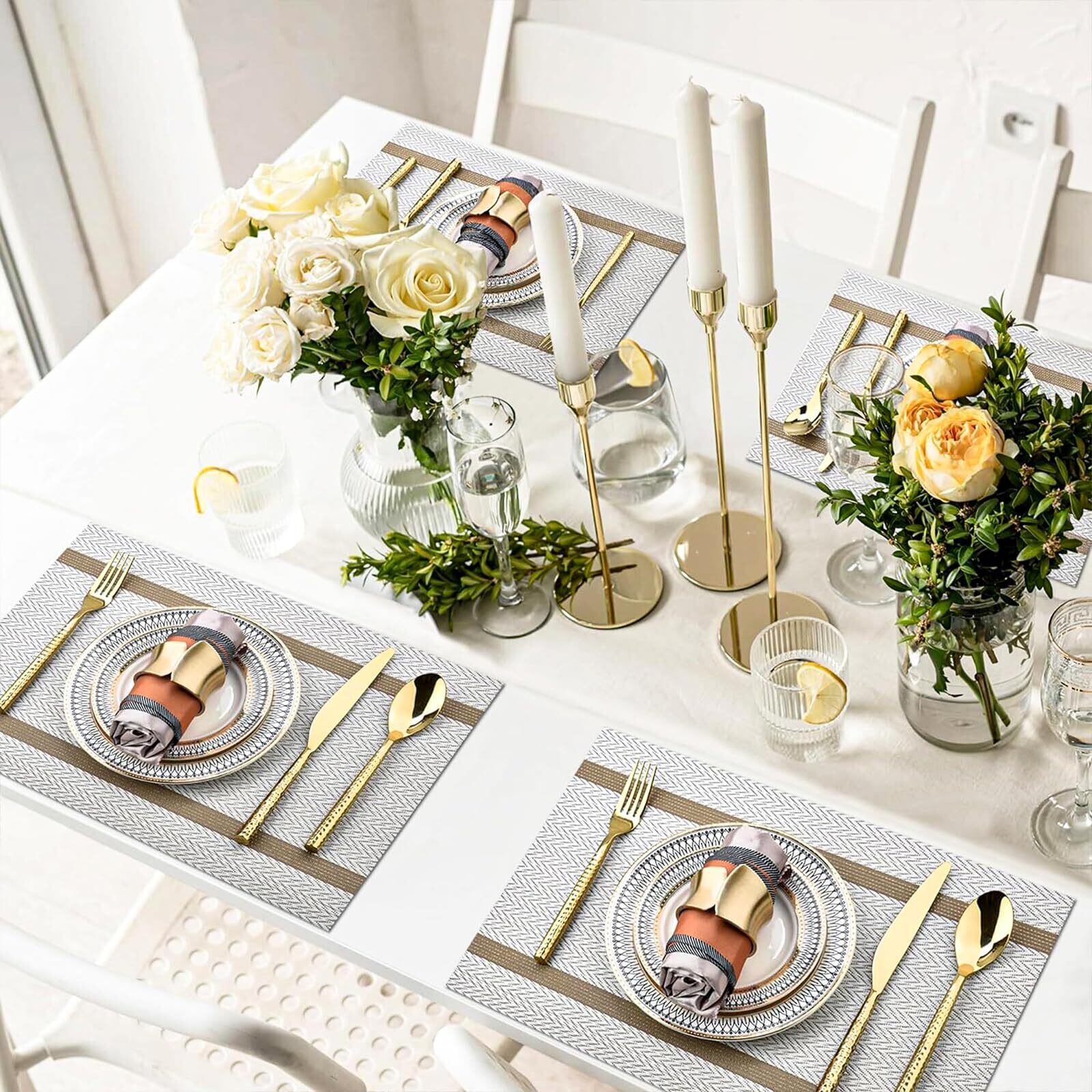 GreenGee ランチョンマット 4枚セット リバーシブル 30×45㎝ 四角 PVC製 花柄 テーブルマット 食卓飾り 防汚 断熱 水洗いOK お手入れ 簡単 滑り止め 摩擦 耐える 華やか 雰囲気 プレースマット 家庭用 レストラン (白)