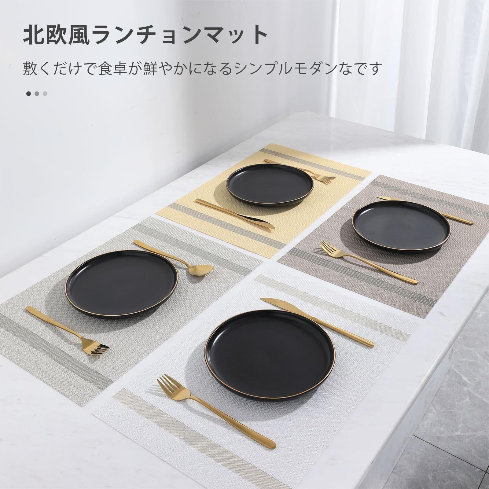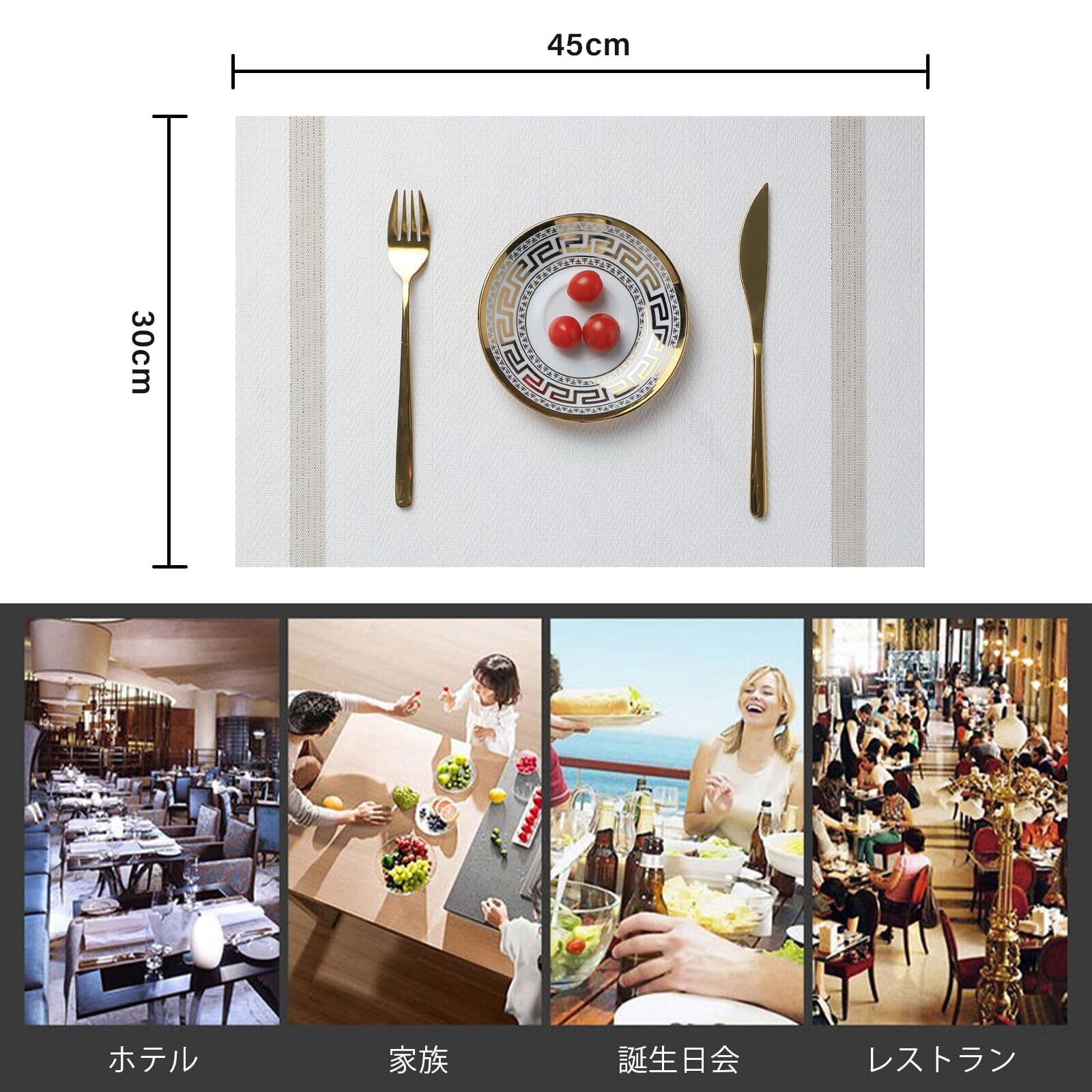 サイズ:約45×30cm、数量:4個セット。高級感のあるプレースマットは、食器を引き立て、食卓を美しく彩ります。