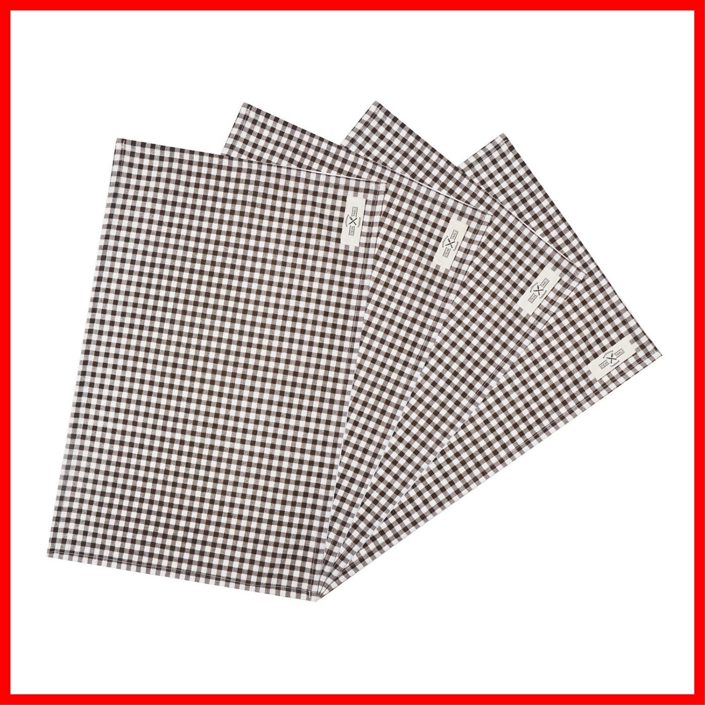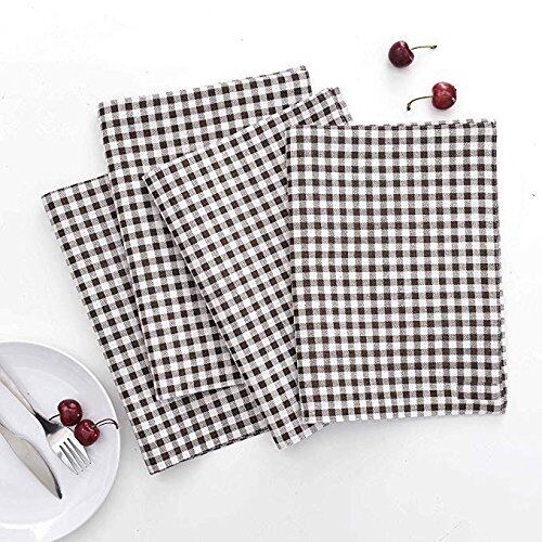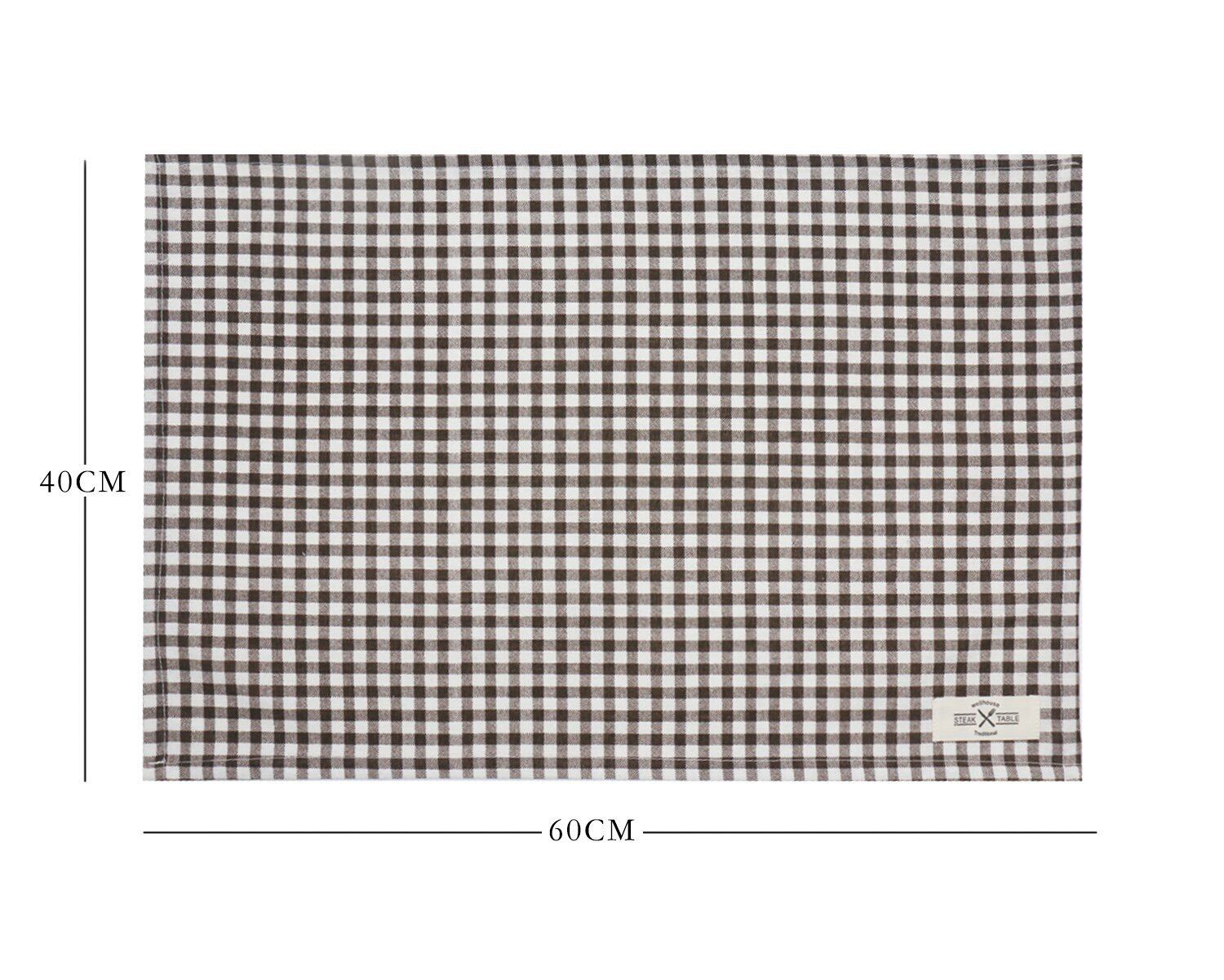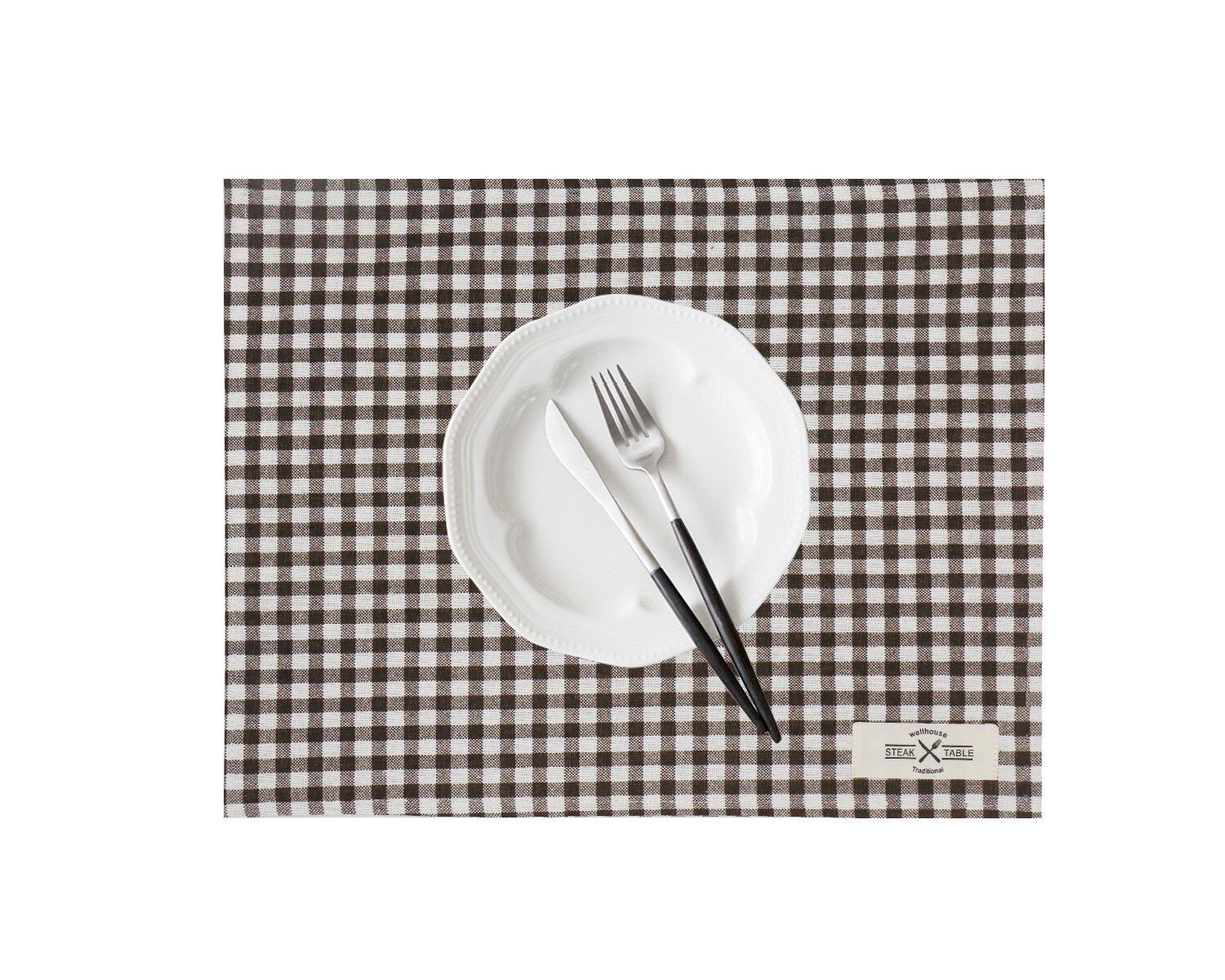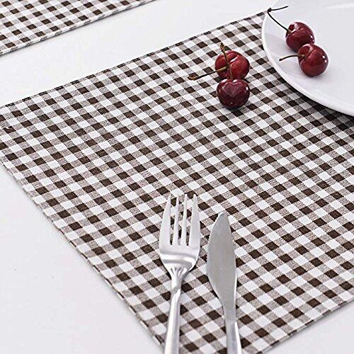 wellhouse ランチョンマット 綿 麻 大きい 60x40cm チェック柄 布 食卓マット 4枚セット (ブラウン L)