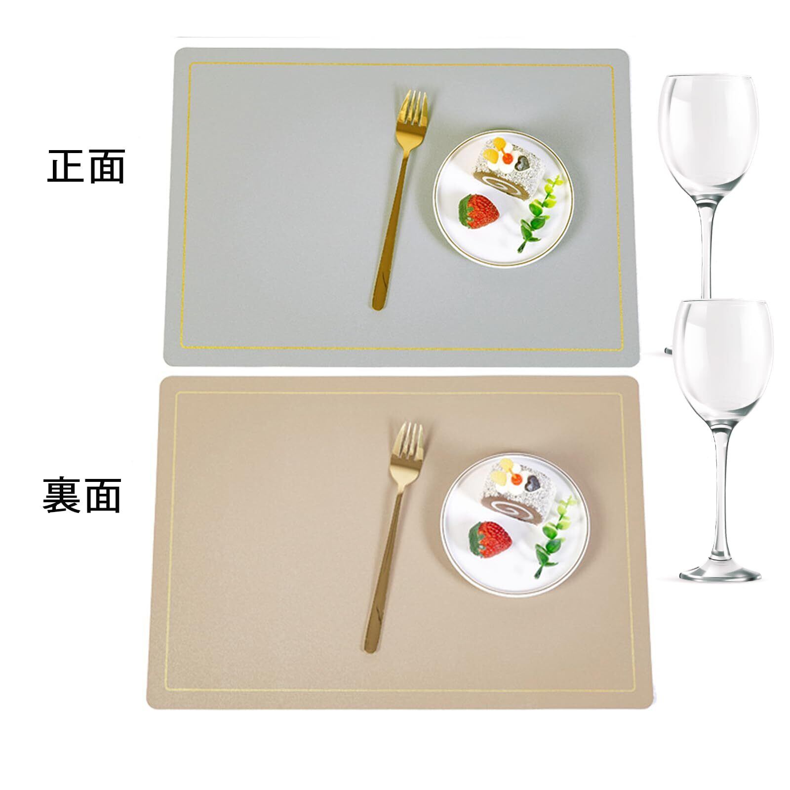 [Senteria]ランチョンマット キッチンマット おしゃれ 無地 PUレーザ 北欧 両面 方型 防水 滑り止め 汚れ防止 断熱 保護 お手入れ簡単 拭き取り可能 調理台 食卓 4枚セット「45*30cm」(グレー×亜麻色)