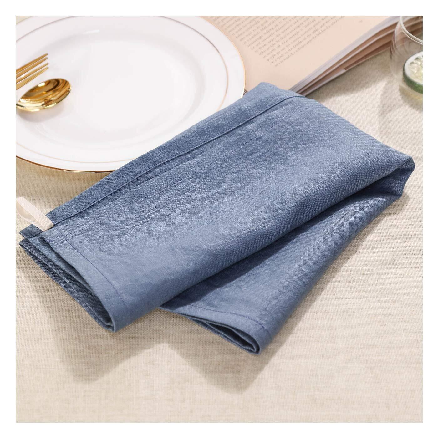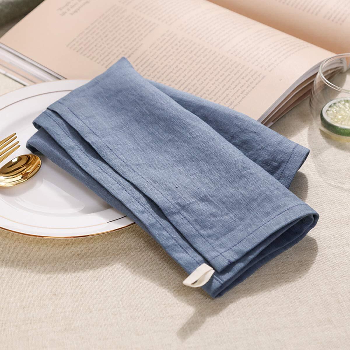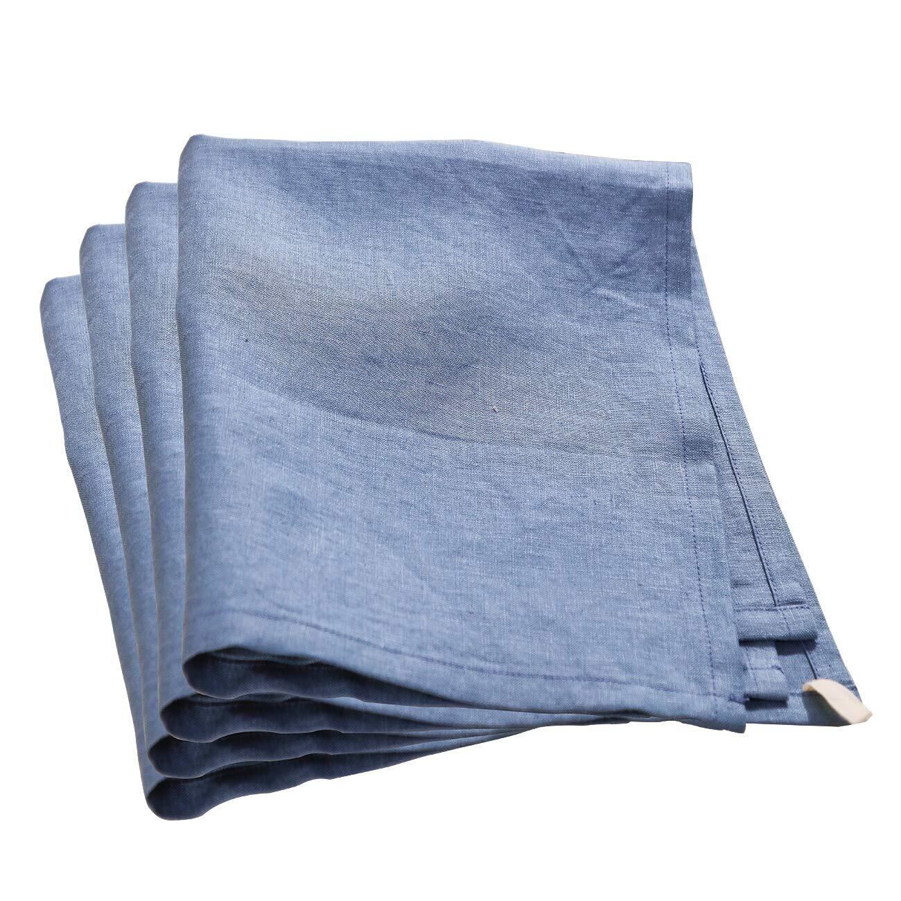 Amazhiyu テーブル ナプキンセット ナフキンセット ワイントーション テーブルナプキン 100%麻製 4 個セット |パーティー、自宅、カフェ、レストラン、ホテルに最適 - 洗濯機で洗えます 青色
