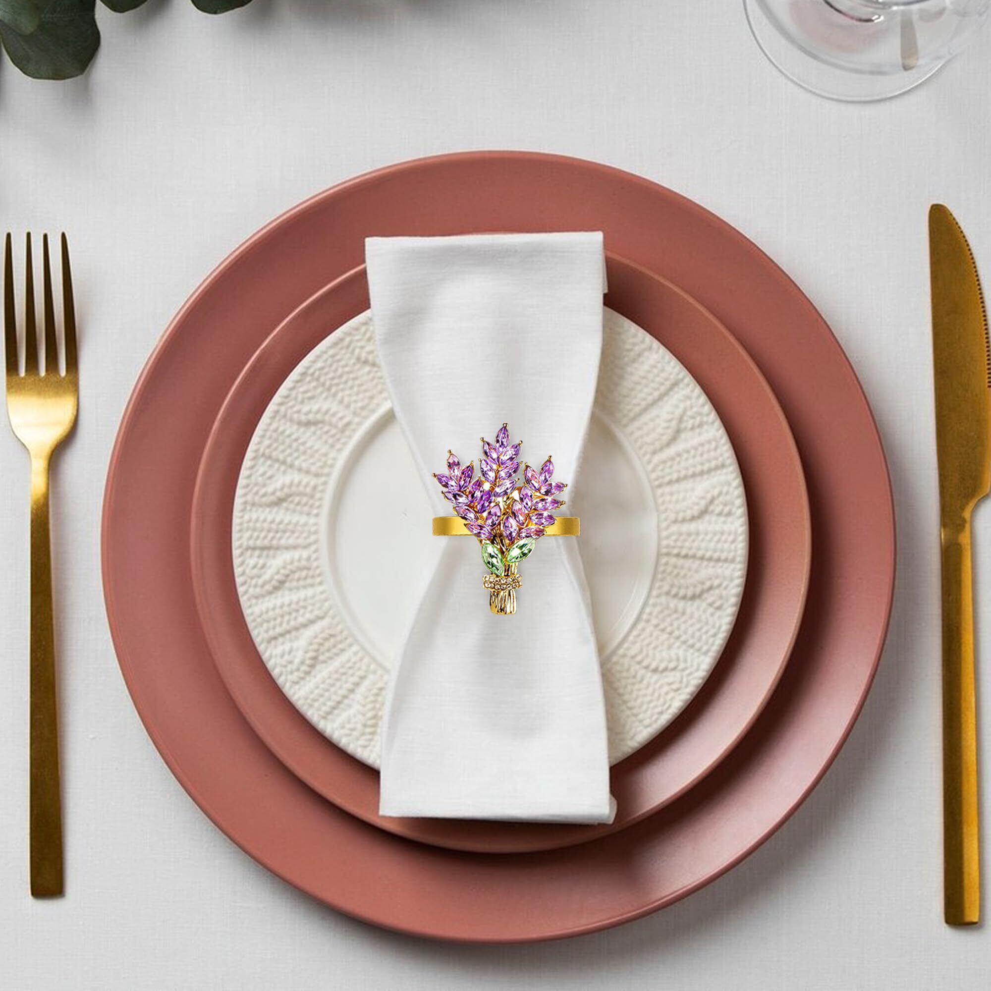 【新着商品】Biiangeメタルナプキンリング6個セット、ナプキンリングホルダー、ラベンダーナプキンバックル。結婚式、誕生日、新築祝い、ディナーパーティー、または日常使用に(パープル)