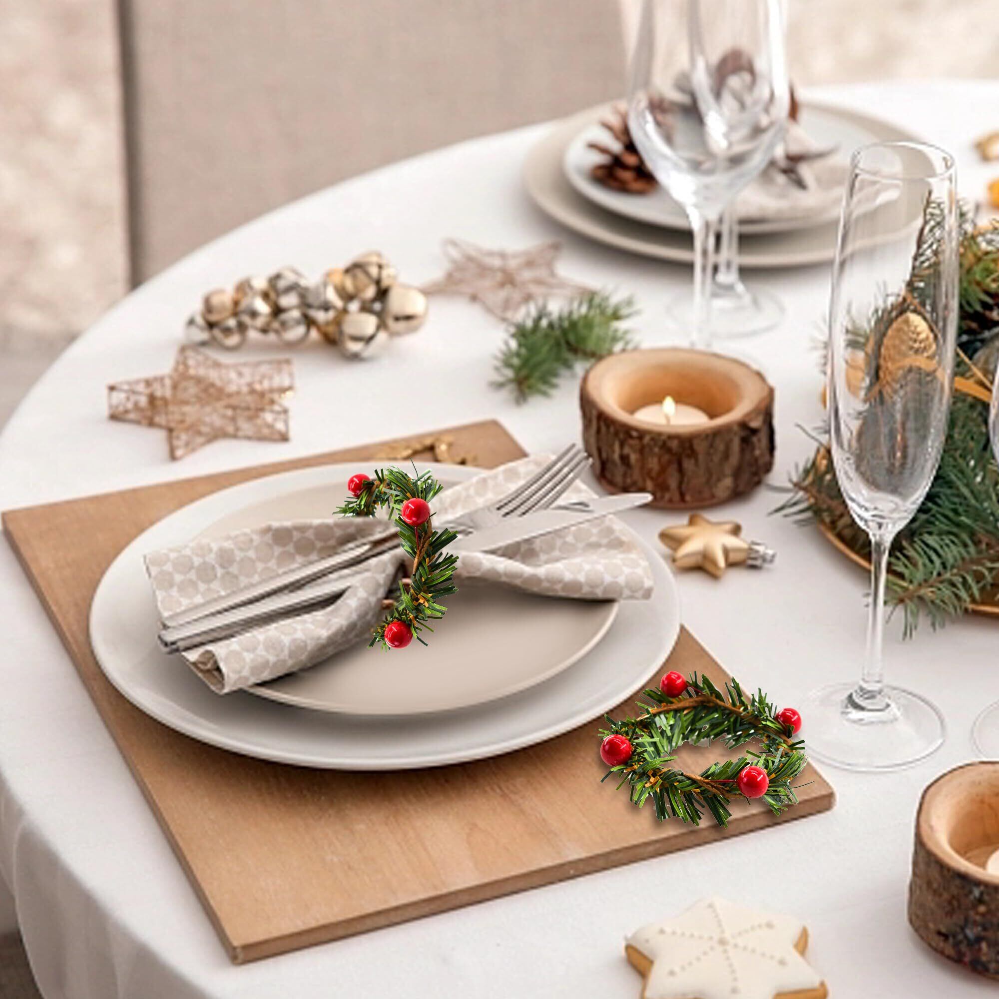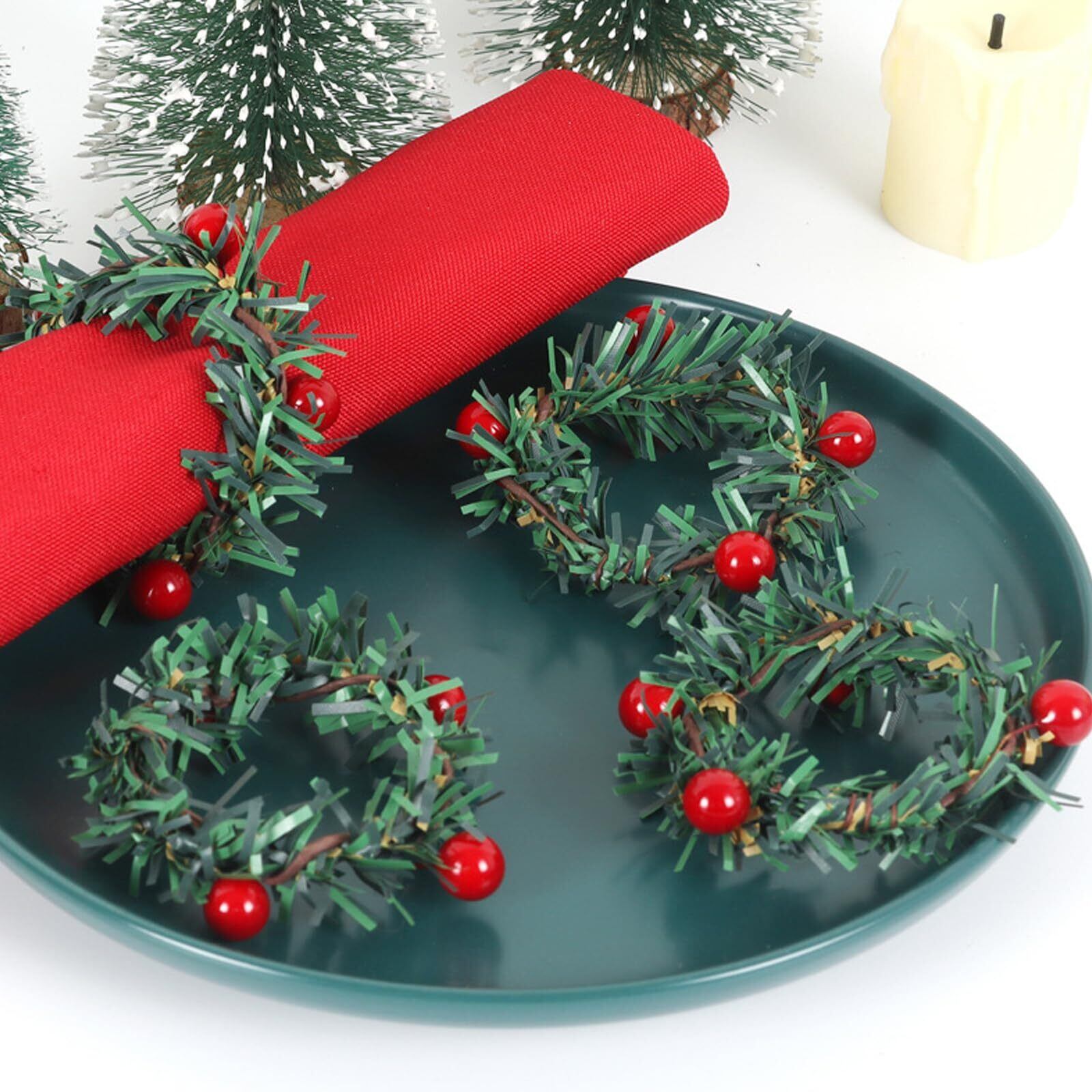 Bacucine ナプキンリング クリスマス テーブル飾り 12個セット 人工松ピック レッドベリー クリスマス 飾り 食卓 装飾 テーブルセッティング 自宅 店舗 クリスマス 結婚式 披露宴 デコレーション ギフト