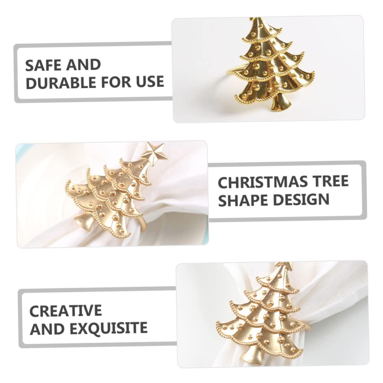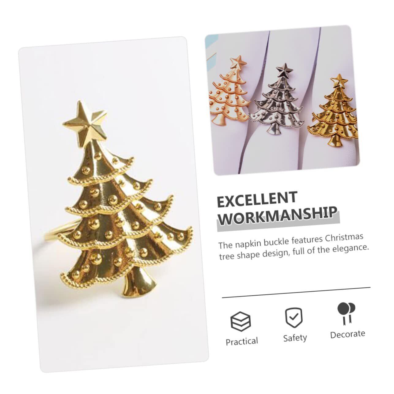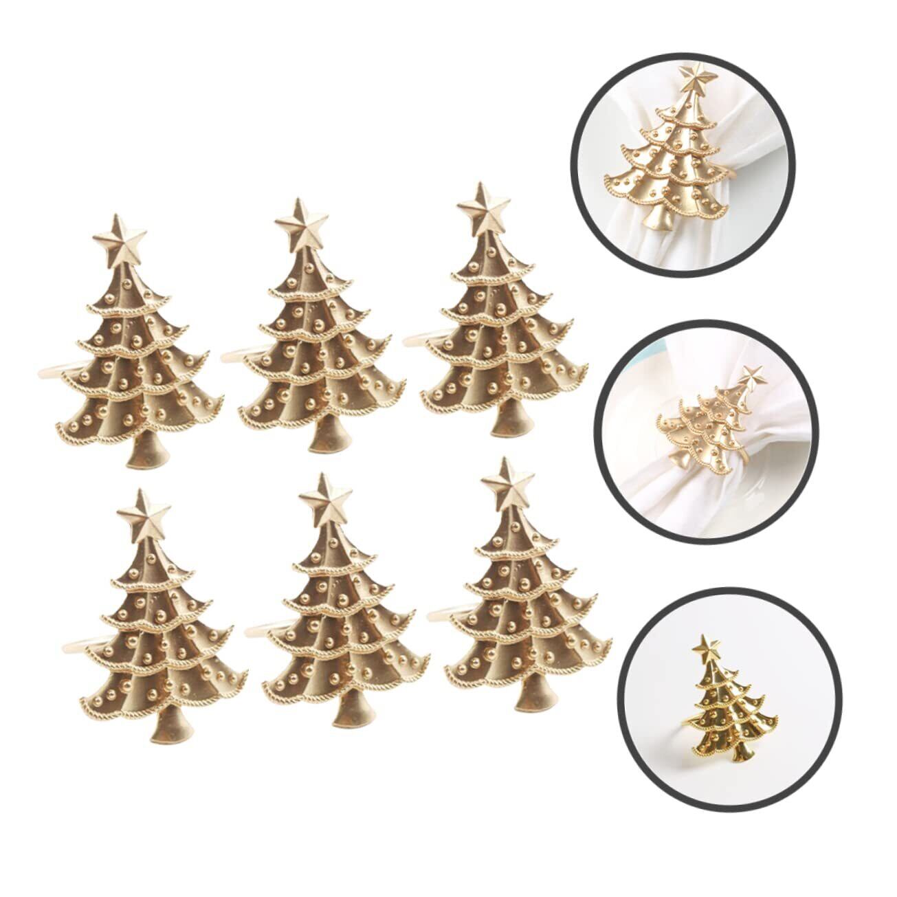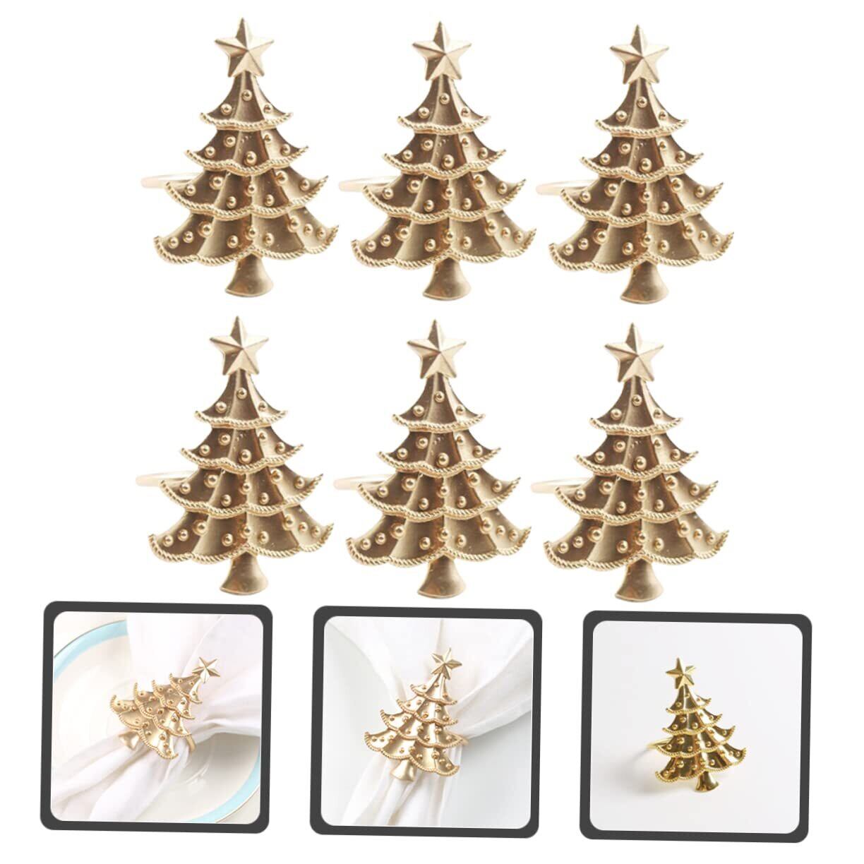 HOLIDYOYO 6個 ナプキンボタン ナプキンバックル クリスマステーブルセッティング ホリデーナプキン クリスマスツリーのナプキンリング クリスマスナプキンリング 食器の装飾 合金 Golden