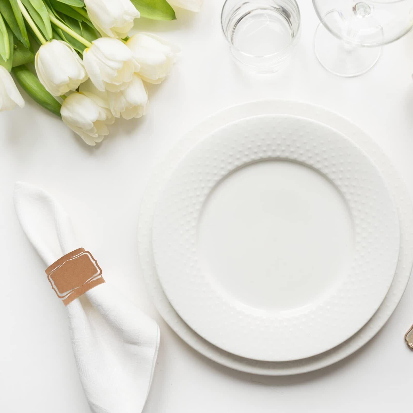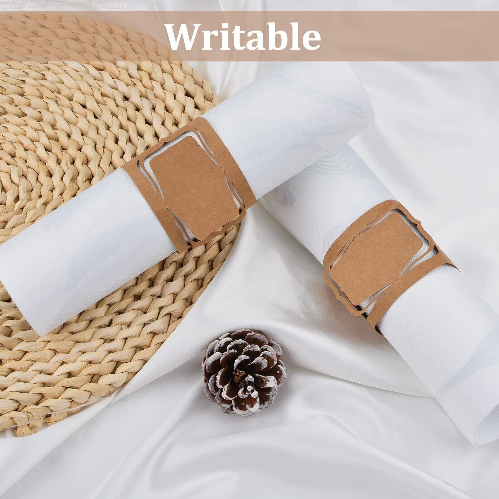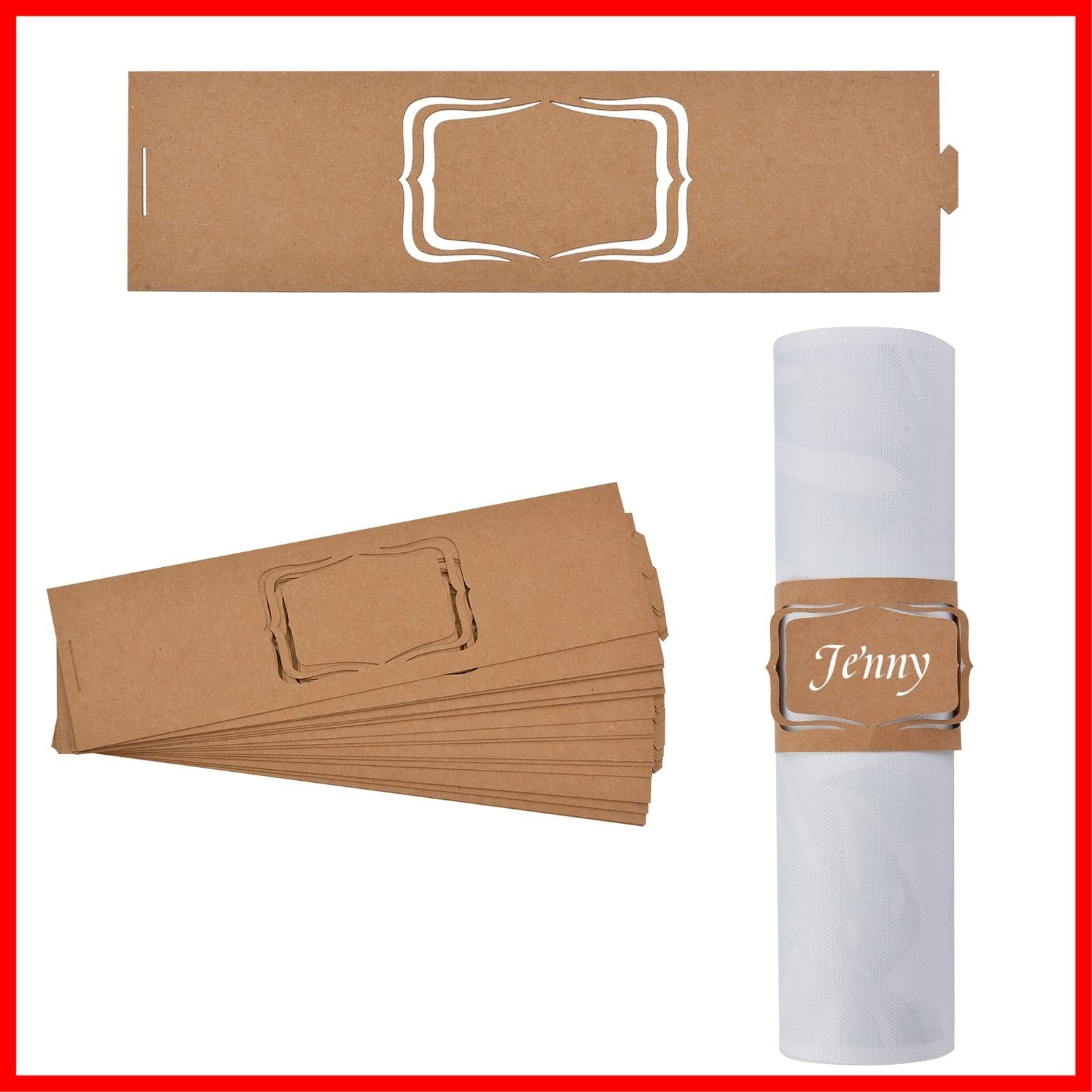 URROMAクラフトペーパーナプキンホルダーリング、50個のネームペーパーナプキンリングバックルホルダーウェディングディナーパーティーお祝いテーブルセンターピース装飾