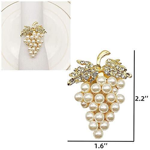 【特価セール】きらびやかな模造ダイヤモンドと真珠の象眼細工の合金ナプキンリングホルダー付きブドウナプキンリング6個セット