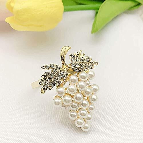 【ぶどうシリーズナプキンリング6個セット】1つのグループリングには6個のナプキンリングが含まれており、リングのデザインはブドウをベースにしています。きらびやかな模造ダイヤモンドと真珠で、リング全体がより魅力的に見えます
