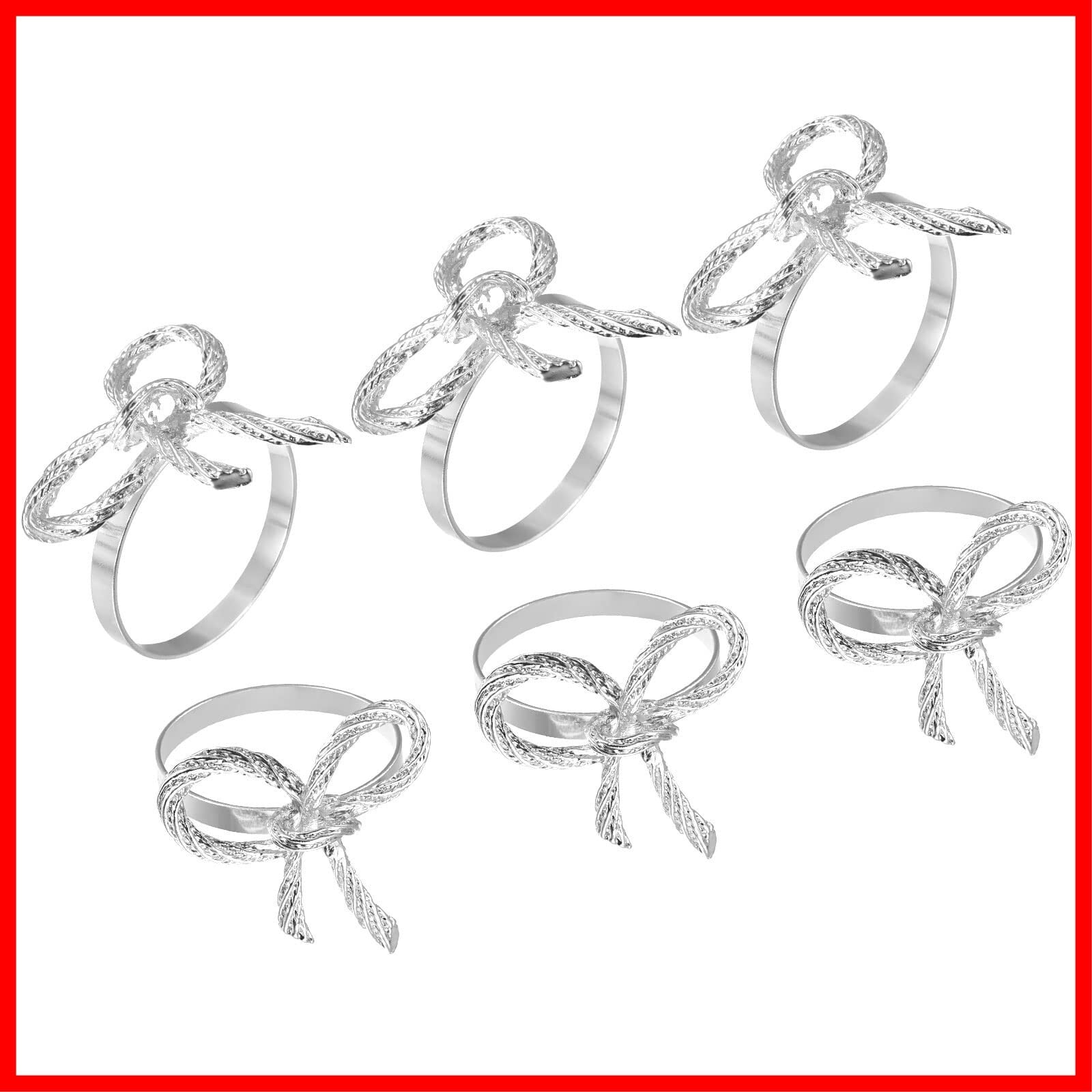 uxcell メタルナ プキンリング 弓のノット ナ プキンリング ホルダー バックルセット ダイニング テーブル 装飾 結婚式 誕生日 休日パーティー シルバートーン 6個入り